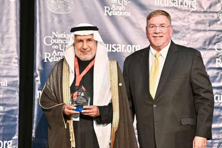 تسلّم معالي المستشار بالديوان الملكي المشرف العام على مركز الملك سلمان للإغاثة والأعمال الإنسانية الدكتور عبدالله بن عبدالعزيز الربيعة من المدير التنفيذي للمجلس الوطني للعلاقات الأمريكية العربية ديلانو روزفلت جائزة القيادة العالمية في مجال الصحة والإنسانية، في العاصمة الأمريكية واشنطن.