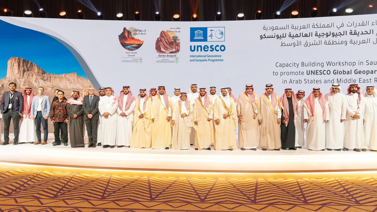 وأضاف سمو نائب أمير حائل: لقد حظينا في منطقة حائل بباكورة المتنزهات الجيولوجية العالمية في المملكة العربية السعودية الذي أصبح ضمن المتنزهات الجيولوجية العالمية وهو متنزه سلمى الجيولوجي “سلمى جيوبارك”، الواقع في منطقة جيولوجية فريدة تضم مناظر طبيعية خلابة، مما يجعله مركزاً مثالياً للبحث والتنمية المستدامة كما تزخر منطقة حائل بالمكنوز التاريخي والثقافي الذي يلبي كافة متطلبات السياح وهو مايدعوني إلى أن أؤكد لكم جميعاً اسعتداد المنطقة لاستضافة ورش العمل القادمة في متنزه سلمى الجيولوجي.