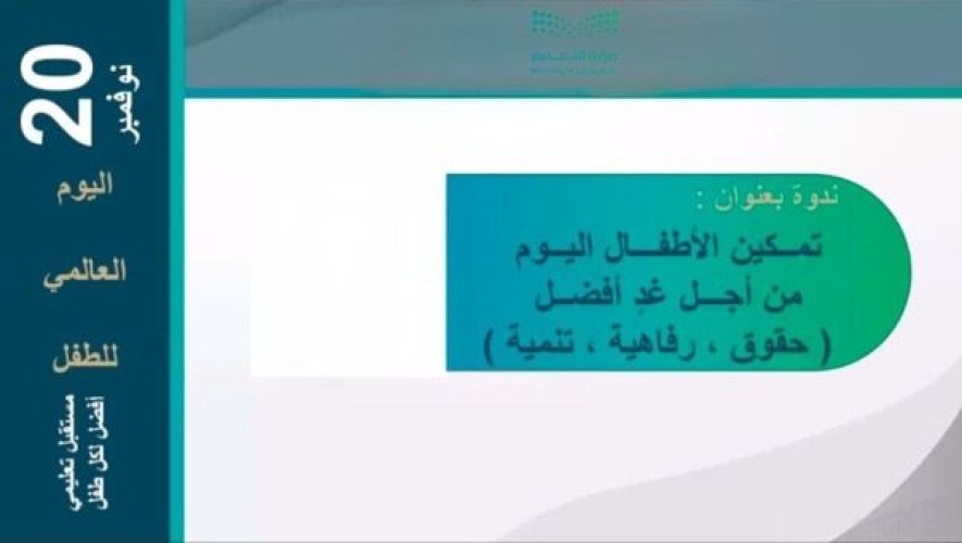 وأضاف أن الاستثمار في الأطفال هو الاستثمار في المستقبل المشرق وذلك من خلال الإهتمام بالطفل وتقديم المزيد من الرعاية من خلال التعليم النوعي، وغرس القيم الأخلاقية والإنسانية، وتوفير مساحات آمنة وممتعة للتعلم ، لتحقيق رؤية المملكة 2030.