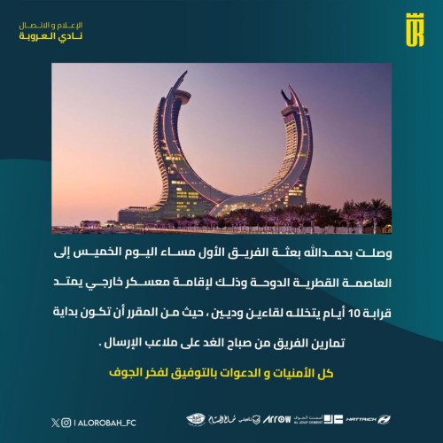 نادي العروبة يصل إلى العاصمة القطرية الدوحة https://www.alshaamal.com/?p=280445 تم النشر في: 27 ديسمبر، 2024 12:32 ص 294920 نواف الرويلي - الجوف aan-morshd وصلت بعثة الفريق الأول لنادي العروبة مساء أمس الخميس إلى العاصمة القطرية الدوحة ،وذلك لأقامة معسكر خارجي يمتد قرابة 10أيام .ويتخلل المعسكر أقامة لقاءين وديين ،حيث من المقرر أن تكون بداية تمارين الفريق اليوم الجمعة ،على ملاعب الأرسال ،