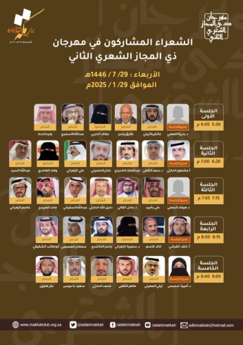 تنطلق اليوم الاربعاء، فعاليَّات الدورة الثَّانية من مهرجان ذي المجاز الشعريِّ، الذي ينظِّمه نادي مكَّة الثقافيِّ الأدبيِّ، بدعم من مستشفى محمد صالح باشراحيل.