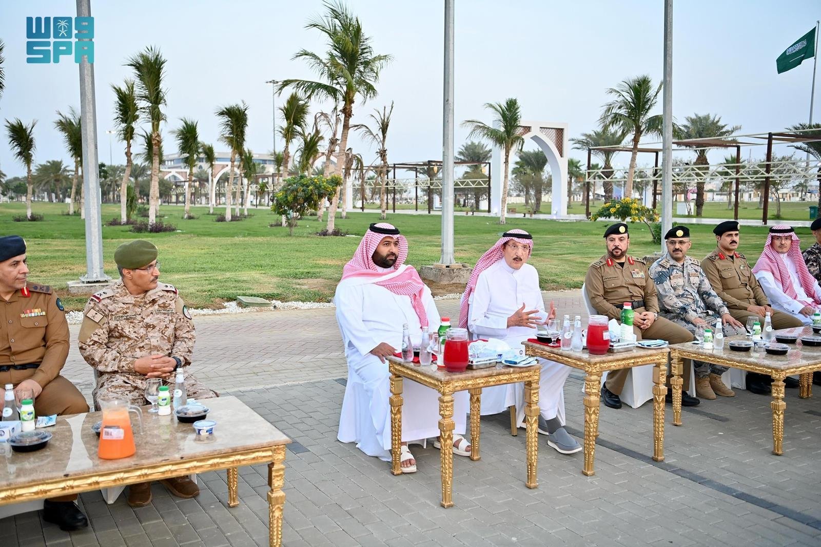 شارك صاحب السمو الملكي الأمير محمد بن ناصر بن عبدالعزيز أمير منطقة جازان، بحضور صاحب السمو الملكي الأمير محمد بن عبدالعزيز بن محمد بن عبدالعزيز نائب أمير المنطقة, اليوم، قادة ومنسوبي القطاعات الأمنية بالمنطقة إفطارهم الرمضاني في الميدان.