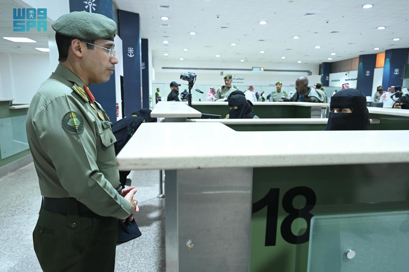 وأكد مدير عام الجوازات تسخير جميع الإمكانات البشرية والتقنية الحديثة لخدمة ضيوف الرحمن خلال مغادرتهم عبر جميع منافذ المملكة الدولية.