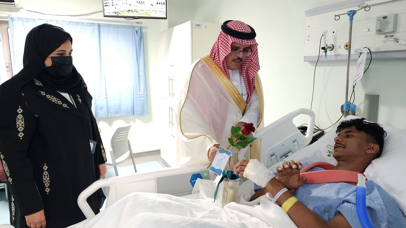 من جانب آخر، زار محافظ الجبيل رئيس لجنة أصدقاء المرضى مستشفي الجبيل العام، للإطمئنان على المرضى المنومين، وتقديم التهنئة لهم بمناسبة عيد الفطر المبارك، داعياً الله تعالى أن يمُنَّ عليهم بالشفاء العاجل، معرباً عن شكره لإدارة المستشفى على رعاية المرضى والوقوف على راحتهم.