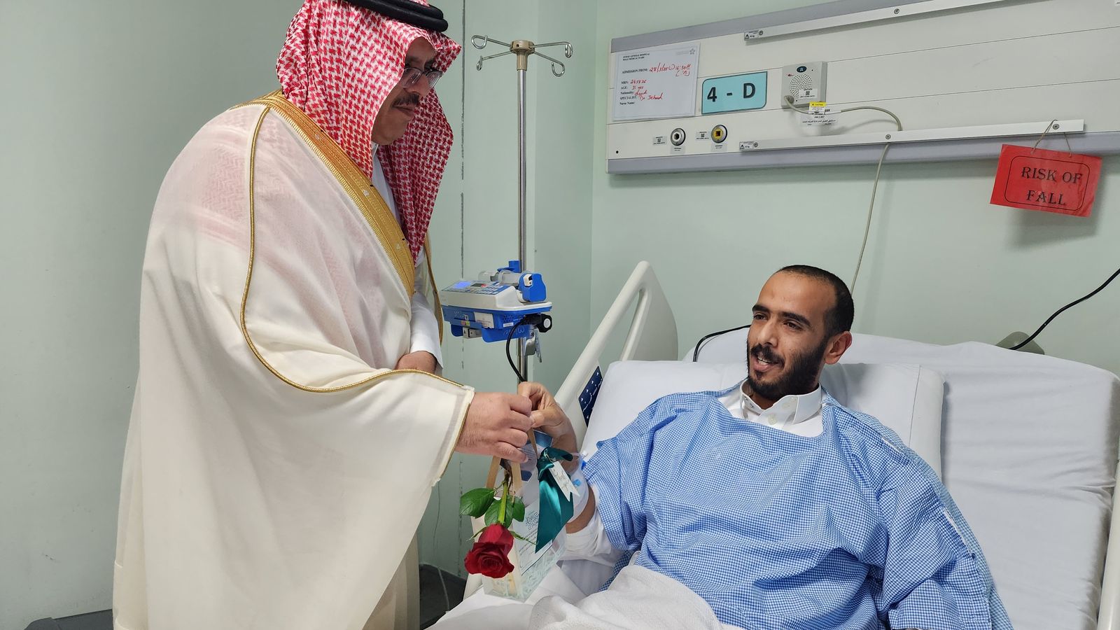من جانب آخر، زار محافظ الجبيل رئيس لجنة أصدقاء المرضى مستشفي الجبيل العام، للإطمئنان على المرضى المنومين، وتقديم التهنئة لهم بمناسبة عيد الفطر المبارك، داعياً الله تعالى أن يمُنَّ عليهم بالشفاء العاجل، معرباً عن شكره لإدارة المستشفى على رعاية المرضى والوقوف على راحتهم.