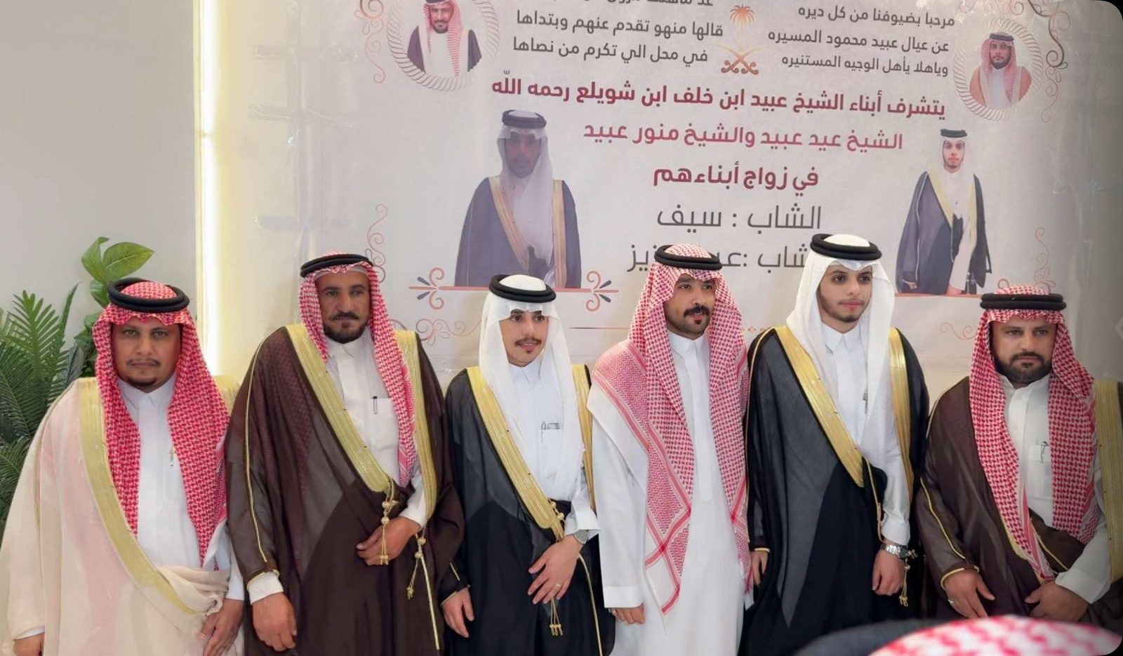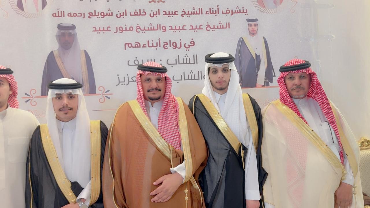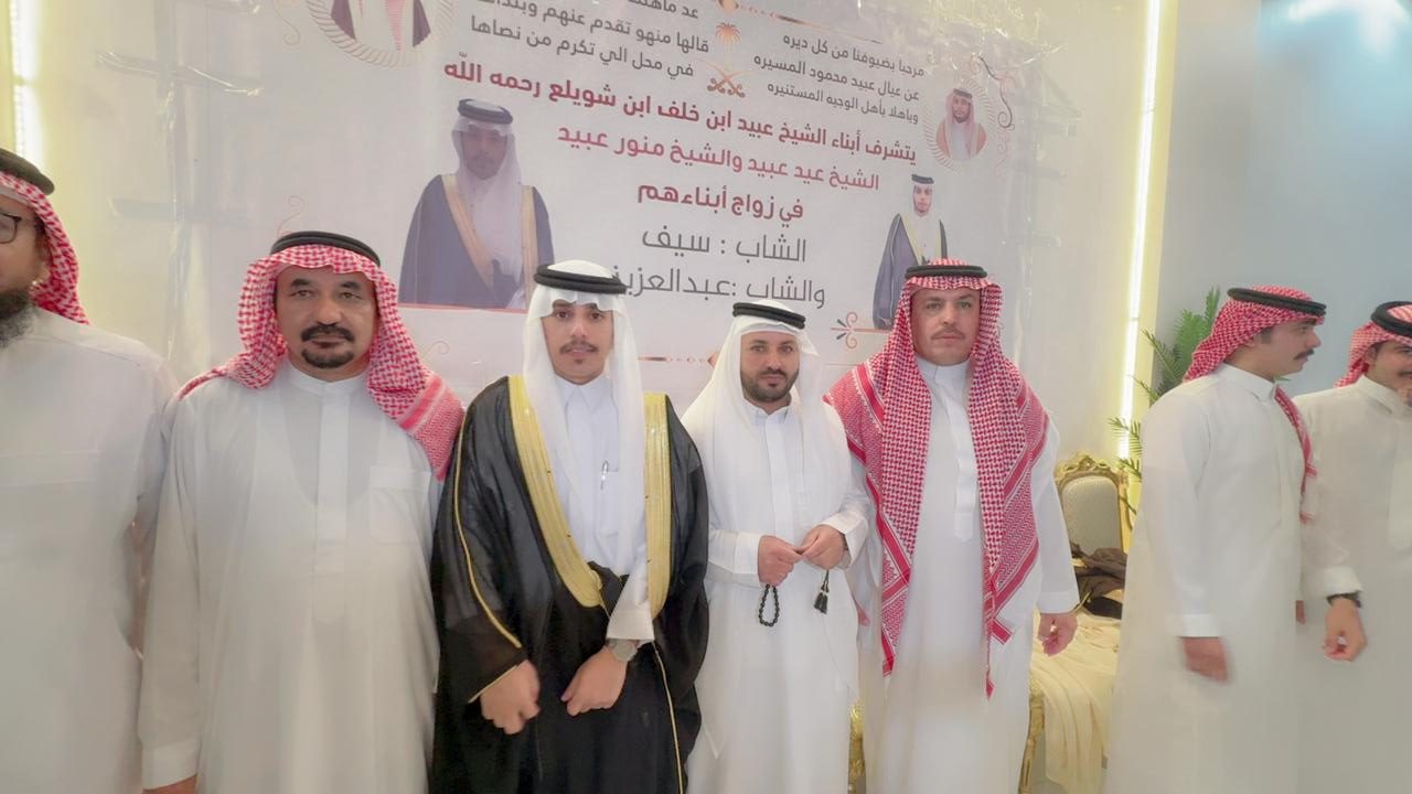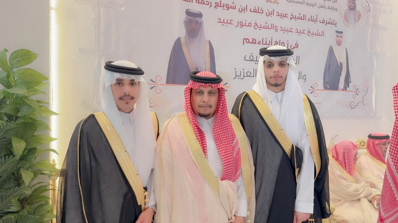 احتفل مساء اليوم الخميس، عيد بن عبيد بن خلف بن شويلع كذالك منور بن عبيد بن خلف ” بزواج أبنائهم عبدالعزيز ” وسيف ، وذلك بقصر الأشقر للإحتفالات بمحافظة الحائط .