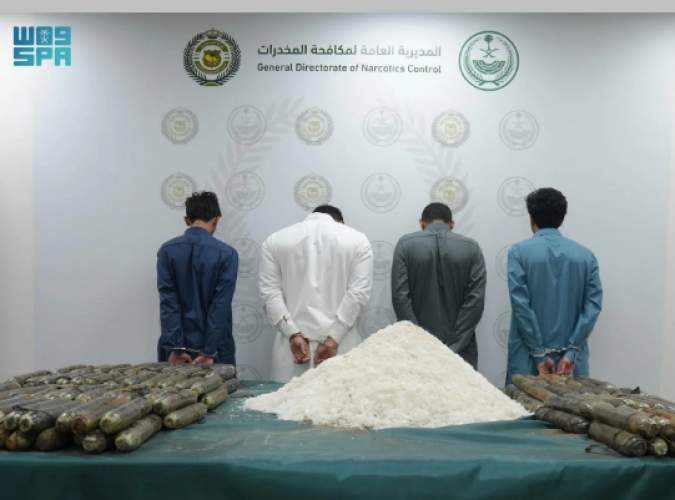 في إطار تنفيذ مهام وزارة الداخلية في مكافحة المخدرات وجهودها في متابعة نشاطات تهريبها وترويجها التي تستهدف أمن المملكة وشبابها، أحبطت المديرية العامة لمكافحة المخدرات محاولة تهريب (147) كيلوجرامًا من مادة الميثامفيتامين المخدر (الشبو) مخبأة في حاويات شحنة رخام بميناء جدة الإسلامي، بالتنسيق مع هيئة الزكاة والضريبة والجمارك، وقبضت على مستقبليها، وهم (3) مقيمين من الجنسية الباكستانية ومواطن.