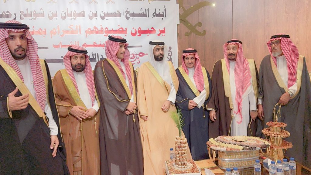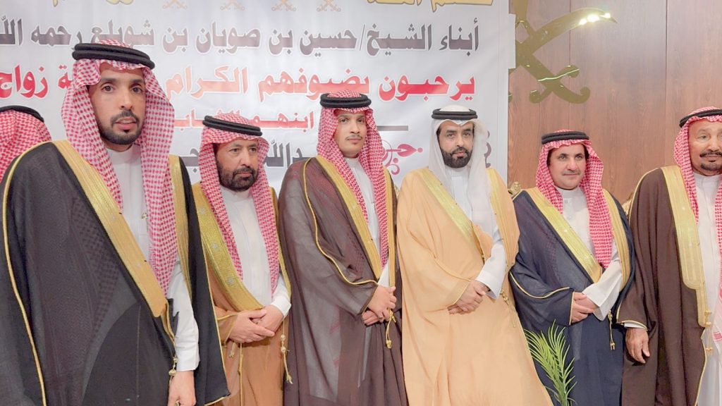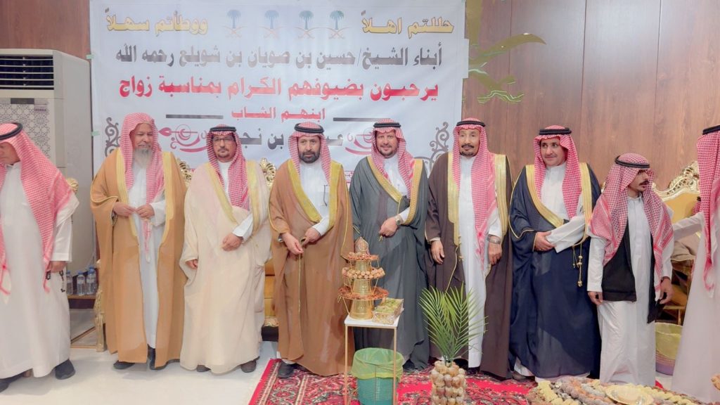 احتفل مساء اليوم الخميس أبناء المرحوم الشيخ “حسين صويان بن شويلع” بزفاف ابنهم الشاب “عبدالله نجر” على كريمة رجل الأعمال “خالد موسى الشويلعي”.