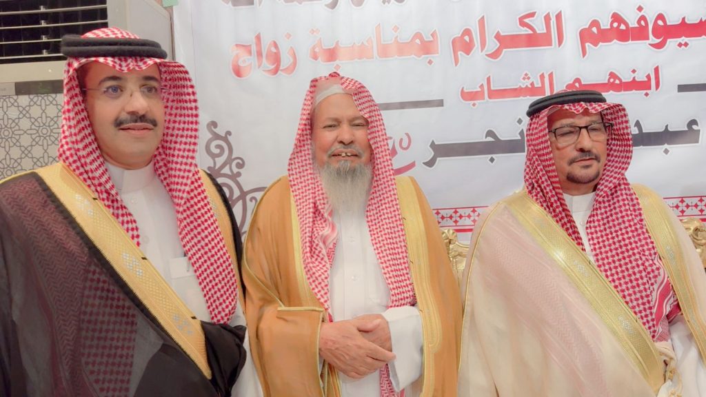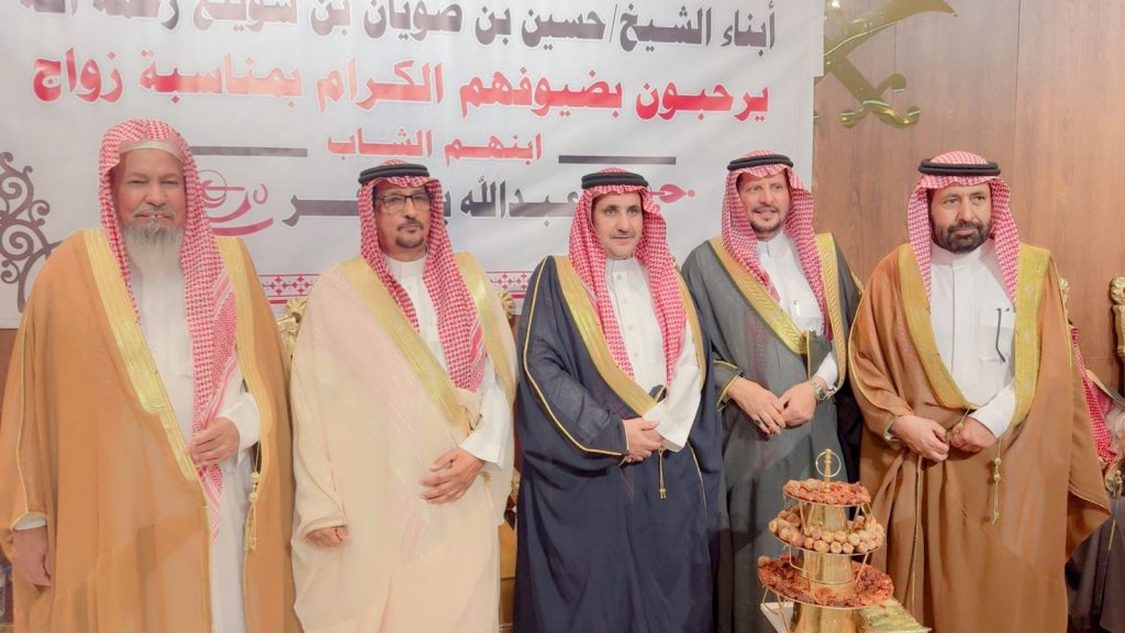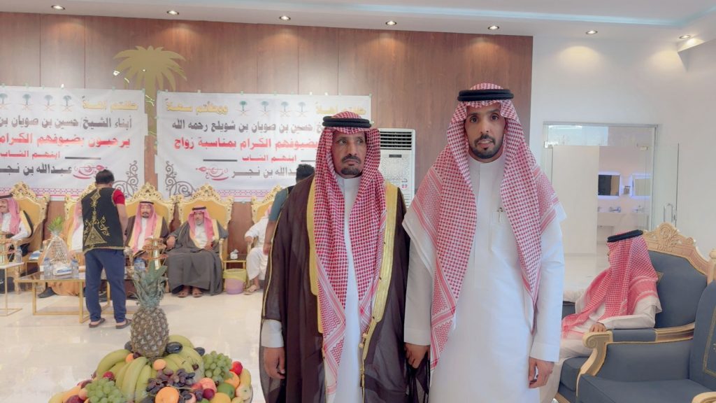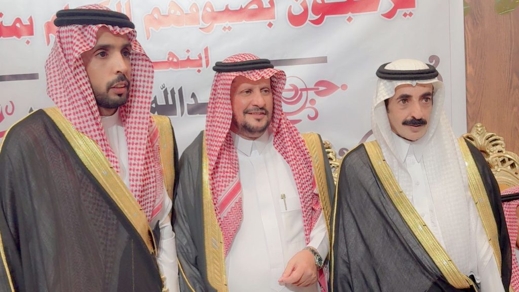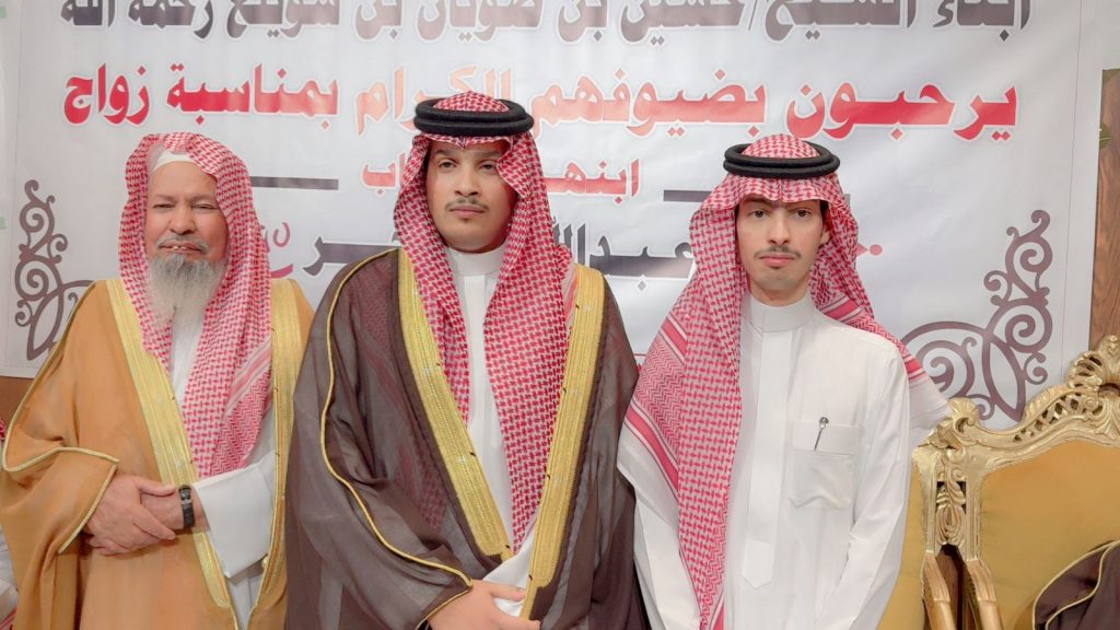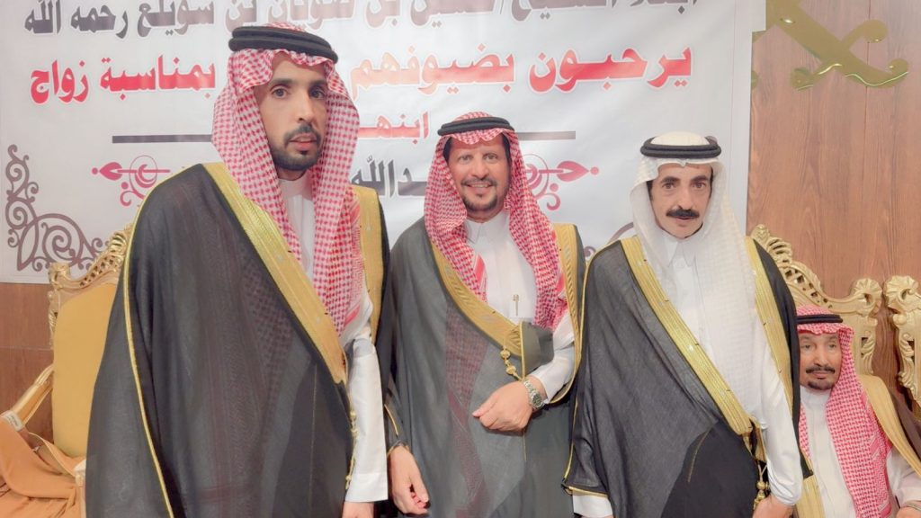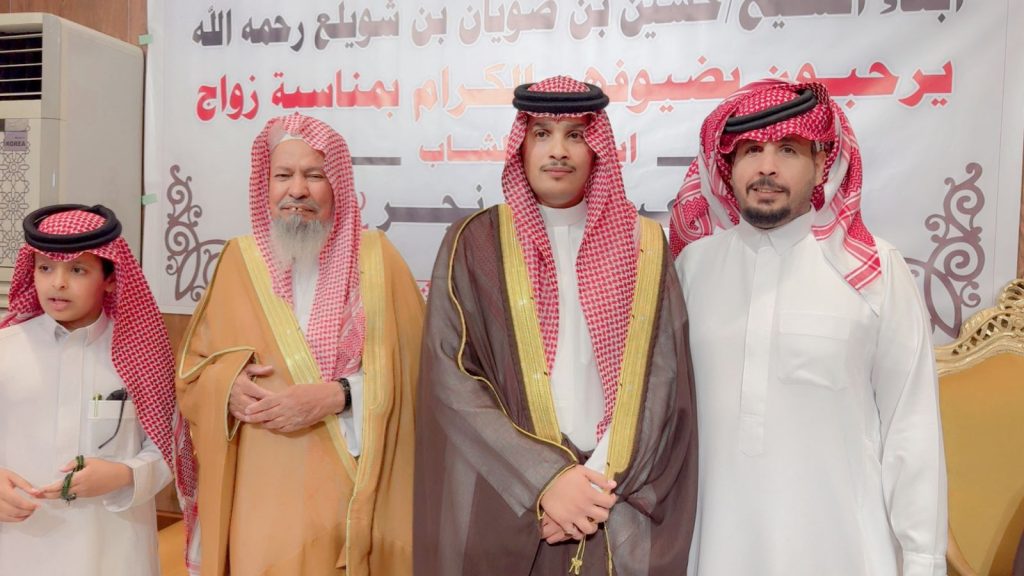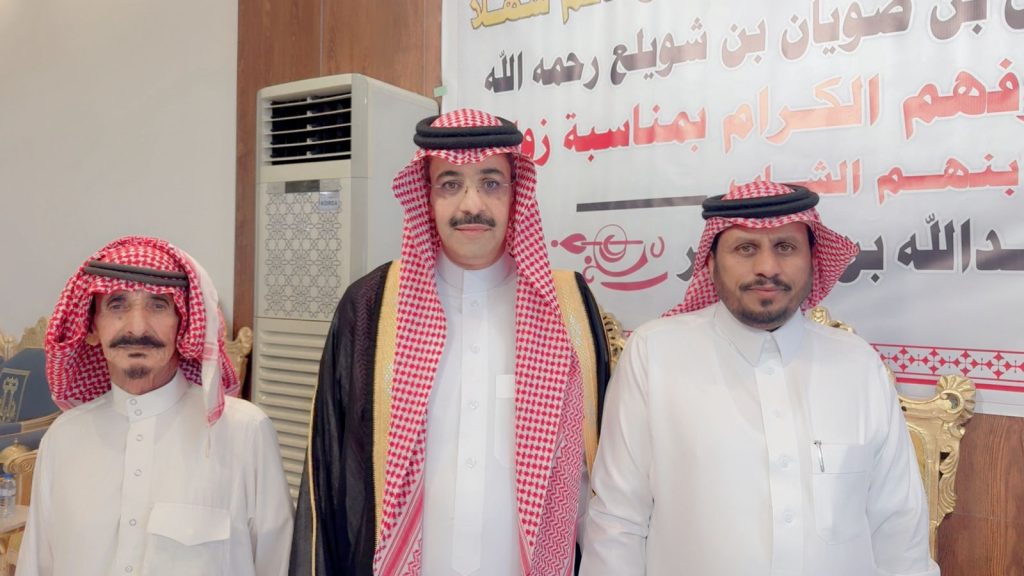 احتفل مساء اليوم الخميس أبناء المرحوم الشيخ “حسين صويان بن شويلع” بزفاف ابنهم الشاب “عبدالله نجر” على كريمة رجل الأعمال “خالد موسى الشويلعي”.