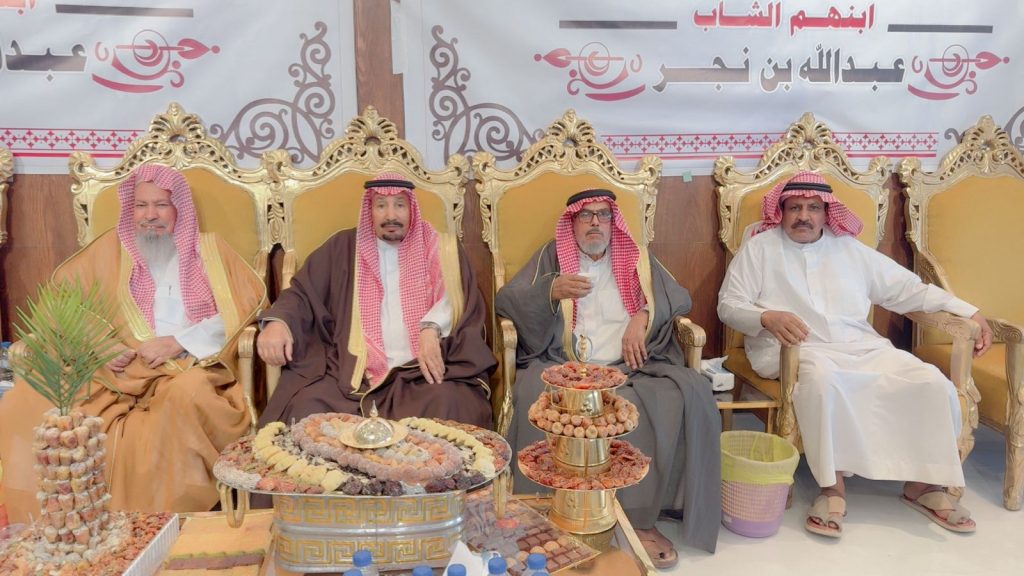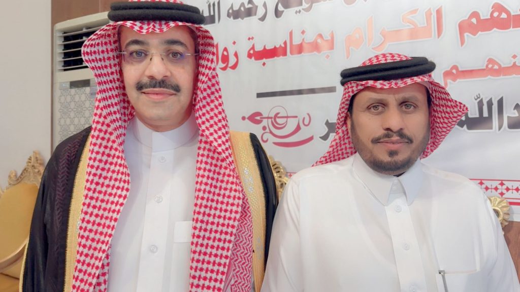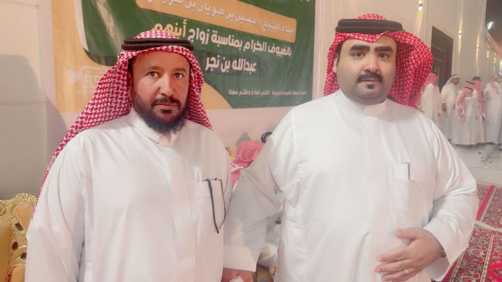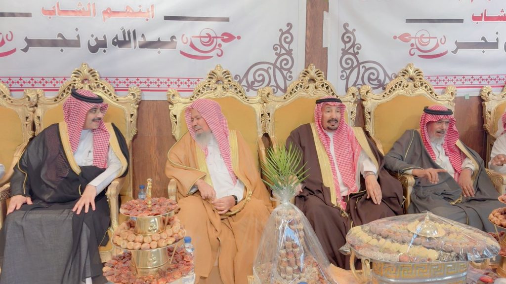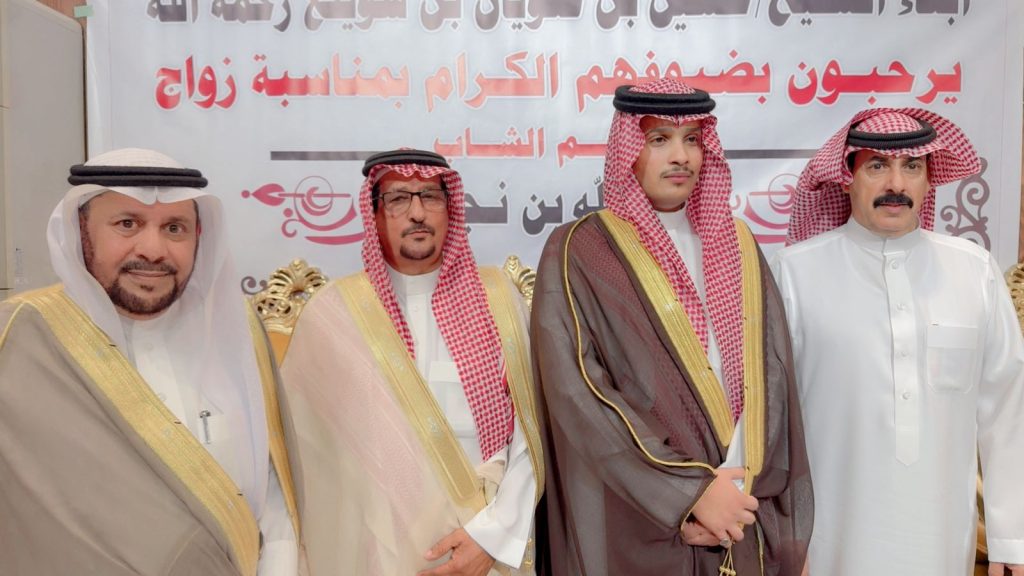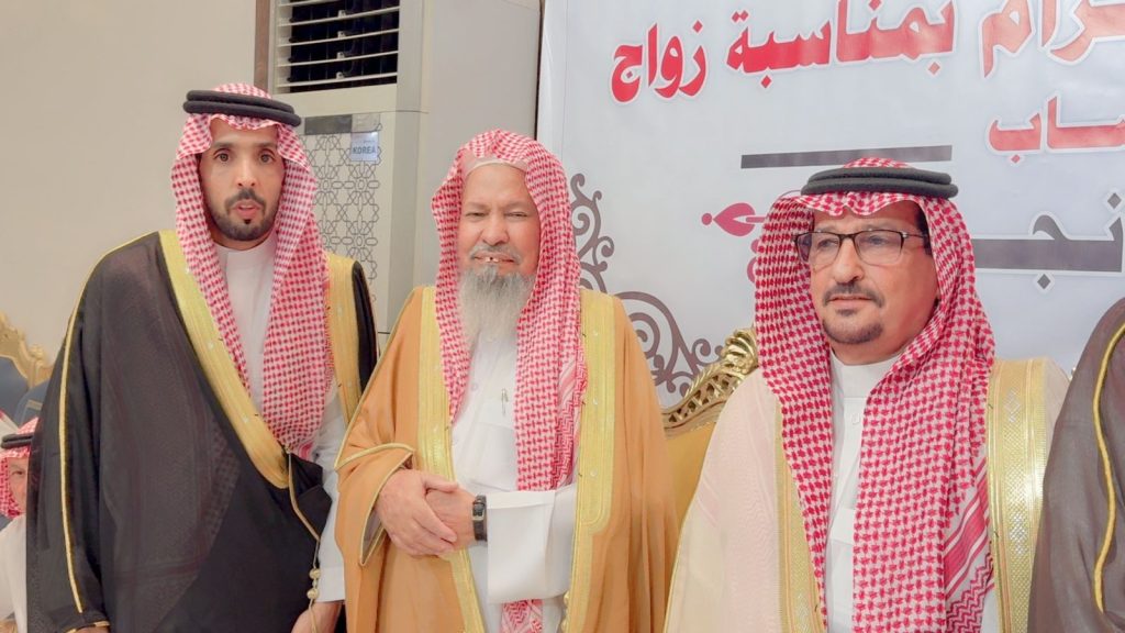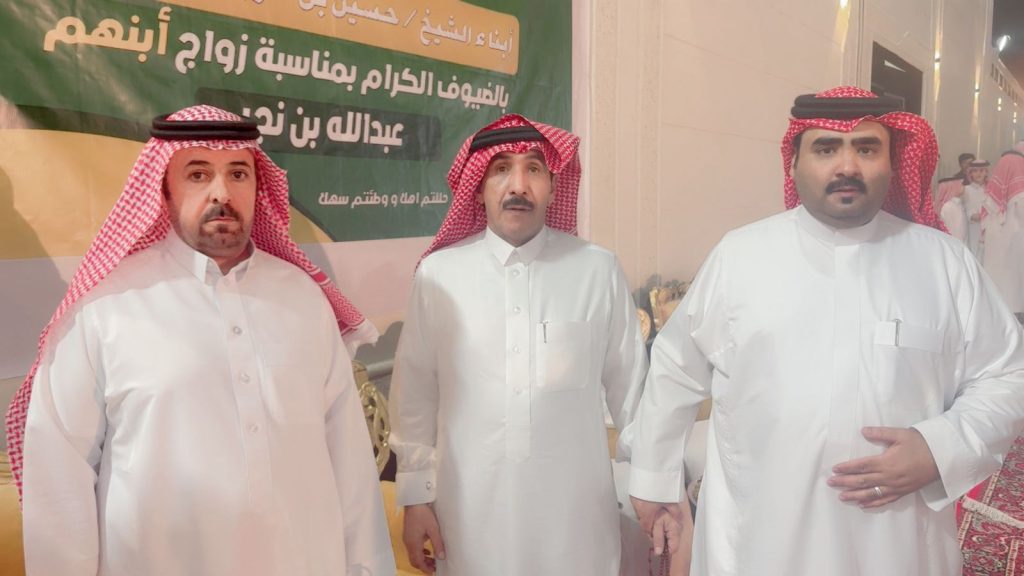احتفل مساء اليوم الخميس أبناء المرحوم الشيخ “حسين صويان بن شويلع” بزفاف ابنهم الشاب “عبدالله نجر” على كريمة رجل الأعمال “خالد موسى الشويلعي”.