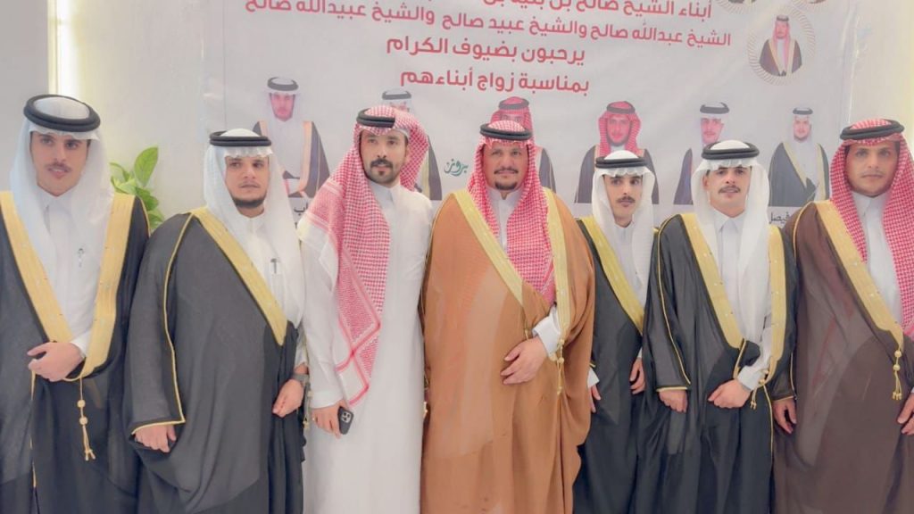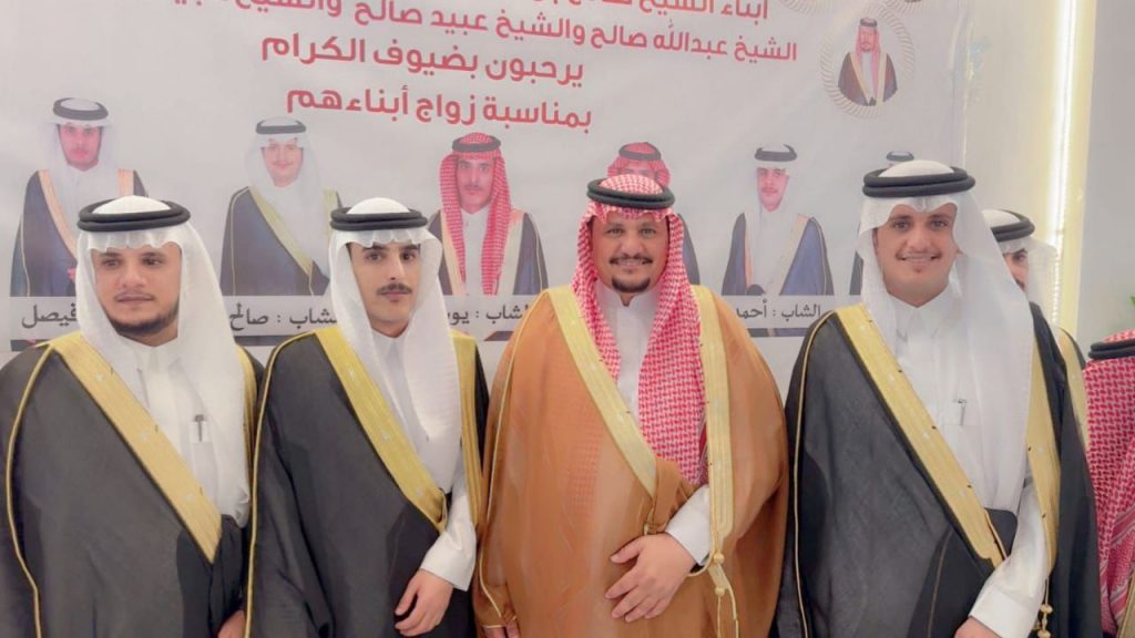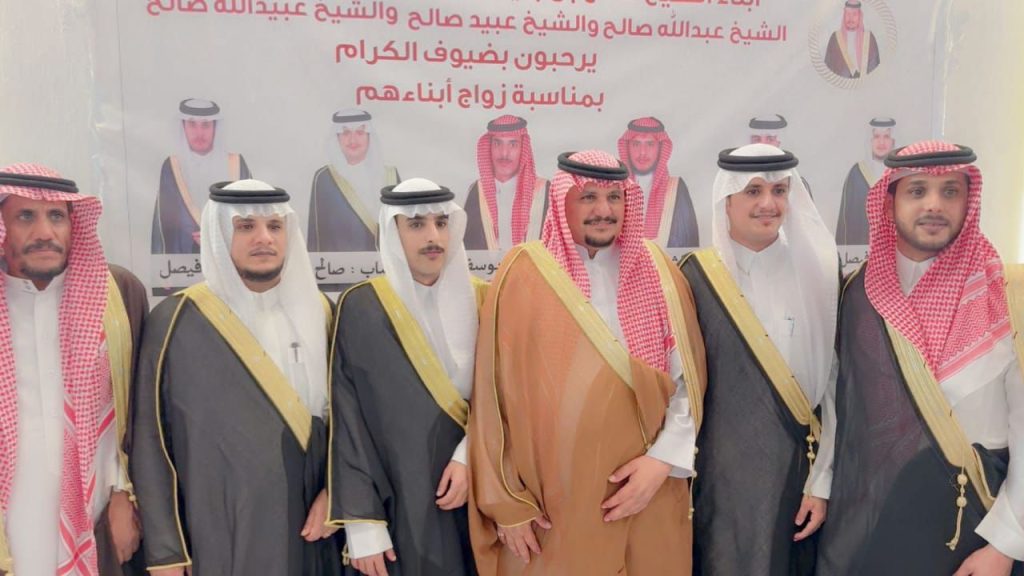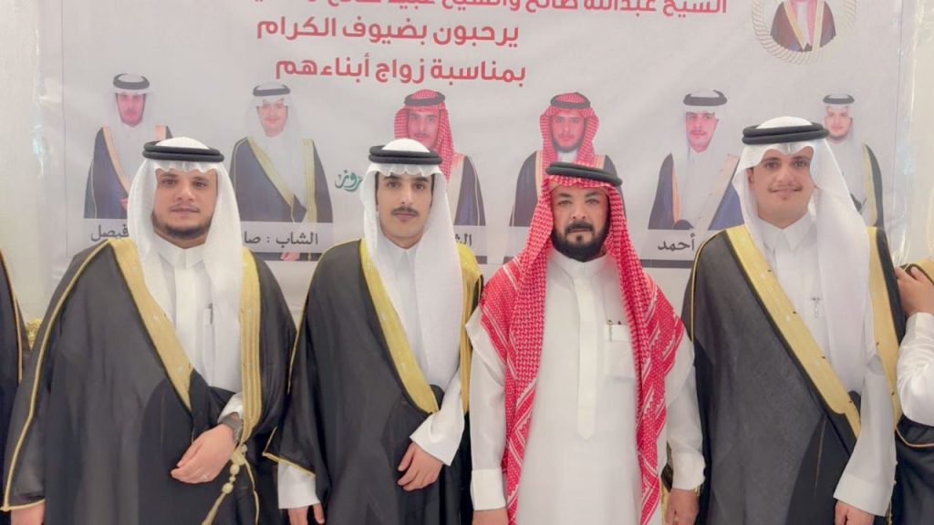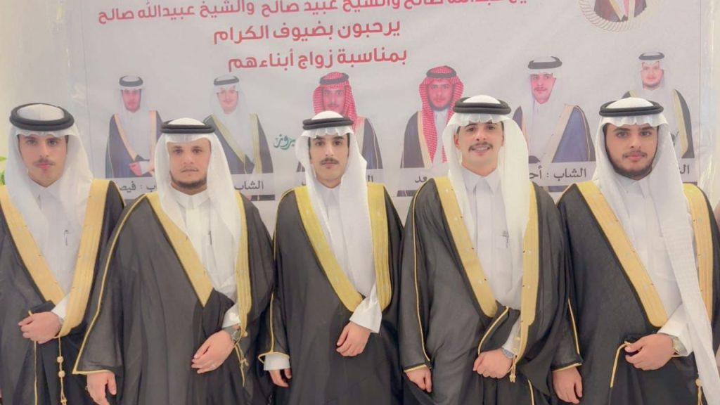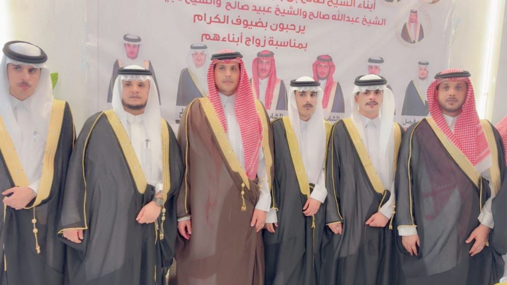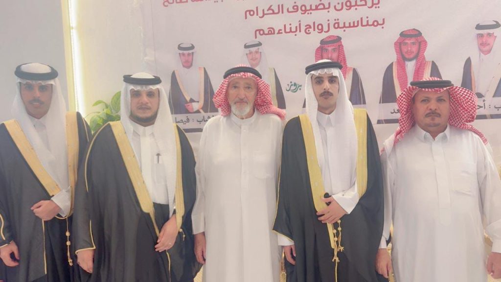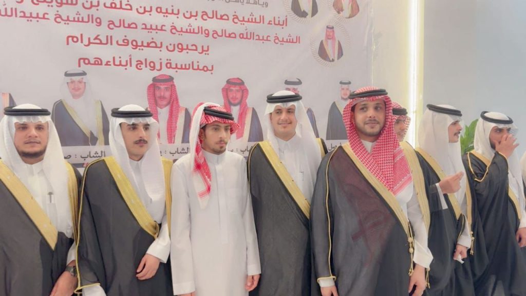 في أجواء مفعمة بالبهجة، احتفلت عائلة “الخلف” من قبيلة الشوالعة مساء اليوم الأحد، الموافق 2 صفر 1447هـ – 27 يوليو 2025م، بإقامة حفل زواج جماعي لستة من أبنائها، وهم: فيصل، أحمد، سعد، يوسف، صالح، وفيصل، وسط حضور كبير اكتظت به أروقة قصر الفلاح للاحتفالات بمحافظة الحائط.