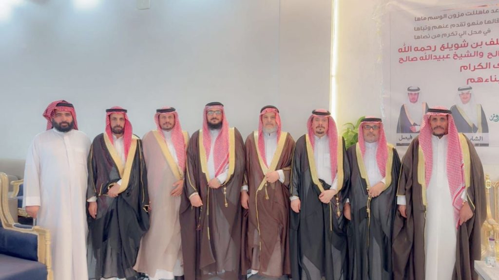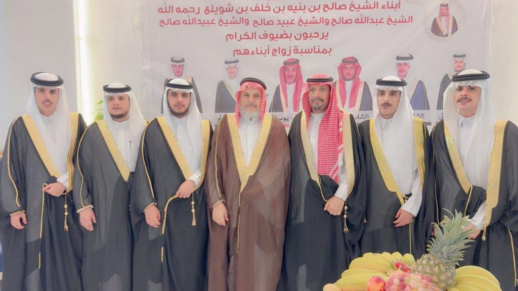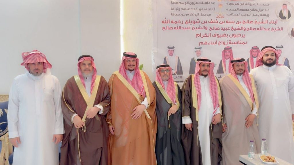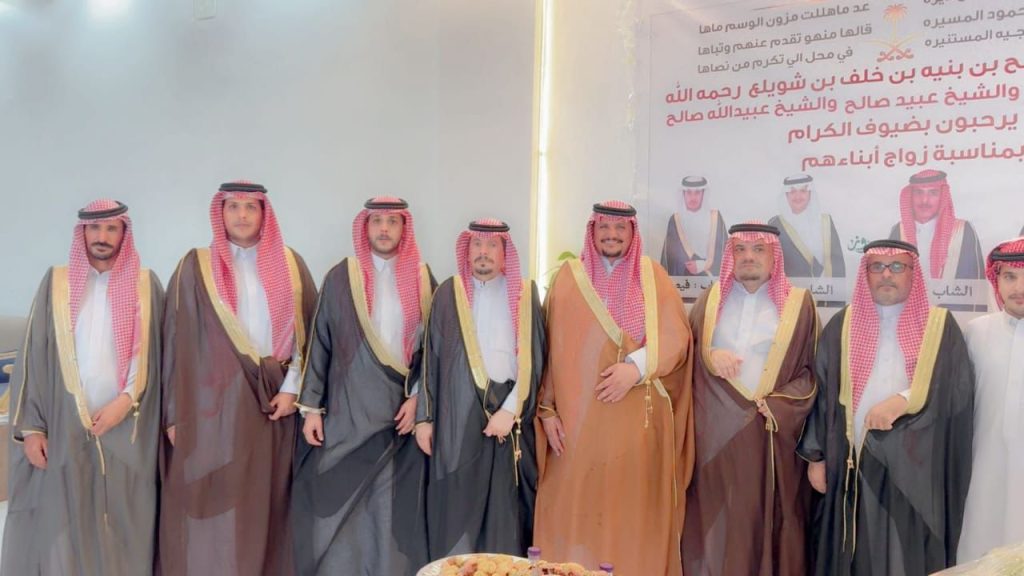 وقد نظّم هذا الحفل أبناء  صالح بن بنيه بن خلف بن شويلع – رحمه الله –، وهم: عبدالله بن صالح، عبيد بن صالح، وعبيدالله بن صالح، حيث أظهروا كرم الضيافة وأصالة الاستقبال، في مناسبة جمعت الأحبة من كل مكان.