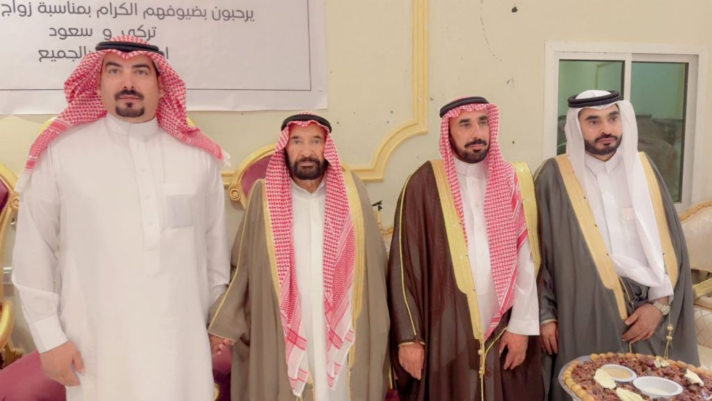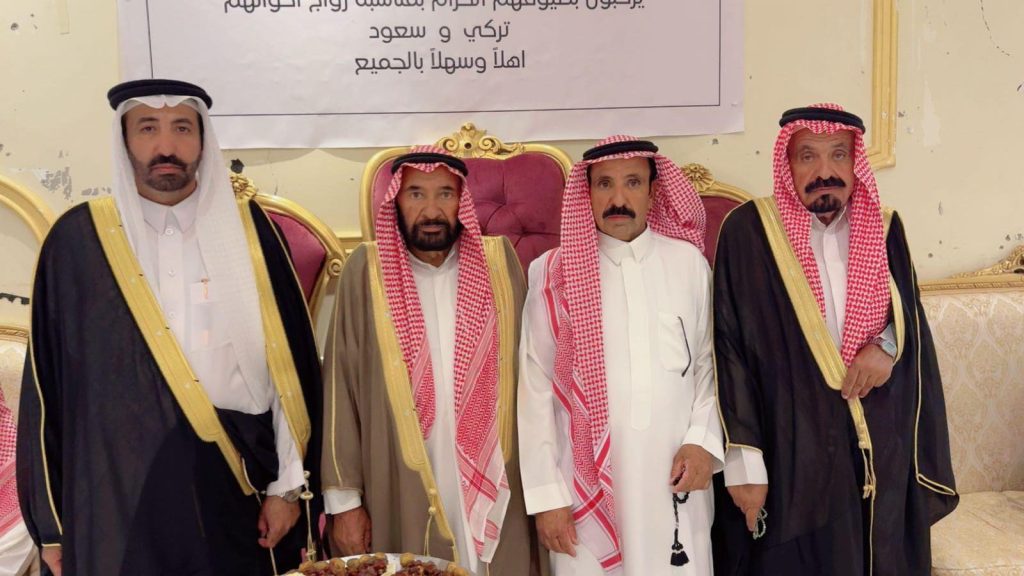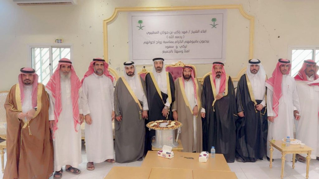 وتتقدّم صحيفة “الشمال” بالتهاني والتبريكات لأبناء فهد بن راكب المظيبري، وتتمنى للعريسين حياةً مليئة بالسعادة والتوفيق، وأن يديم الله الأفراح على الجميع.