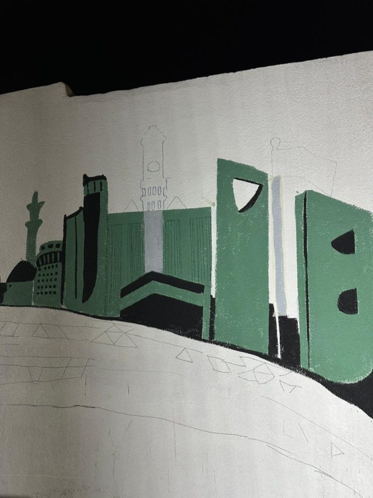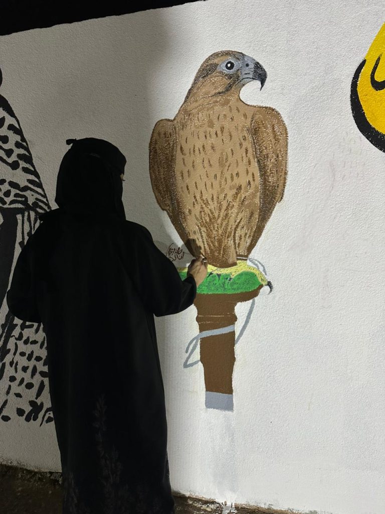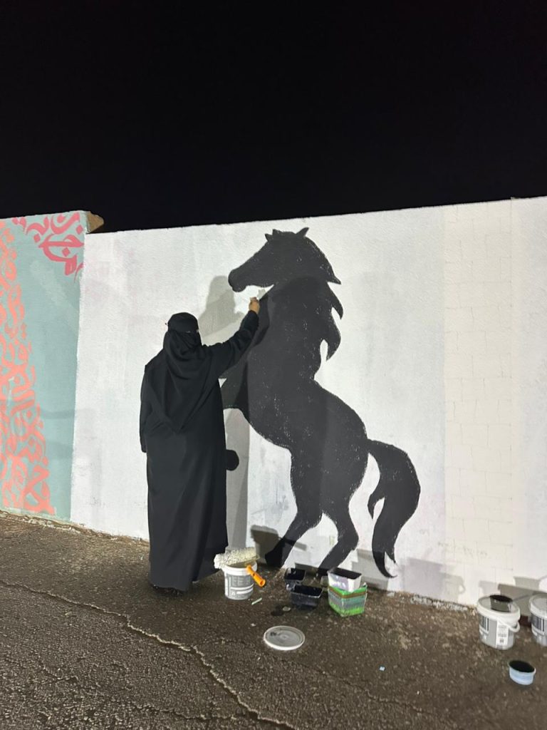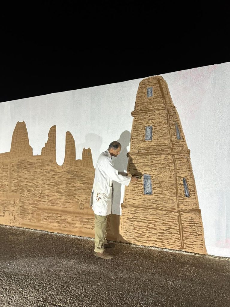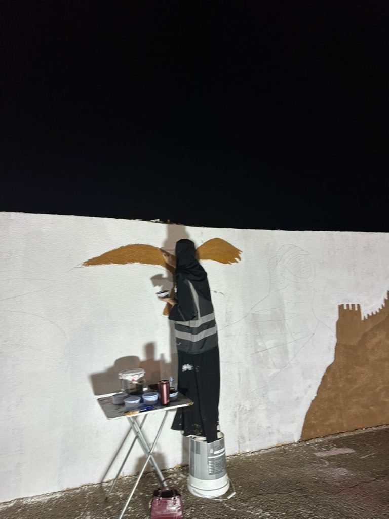لأول وهلة، كنت أظن أن دوري في جدارية الكيلومترين يقتصر على التغطية الإعلامية، ودعم الفنانين المحليين، وإبراز جهود المكتب الاستراتيجي لتطوير منطقة الجوف، وجهود أمانة المنطقة في إزالة التشوه البصري وتحسين المشهد الحضاري. لم يخطر ببالي أنني سأقف يومًا أمام جدار، لا لأرصد الحدث، بل لأكون جزءًا منه، وأحكي حكاية جوفية عبر الريشة واللون.