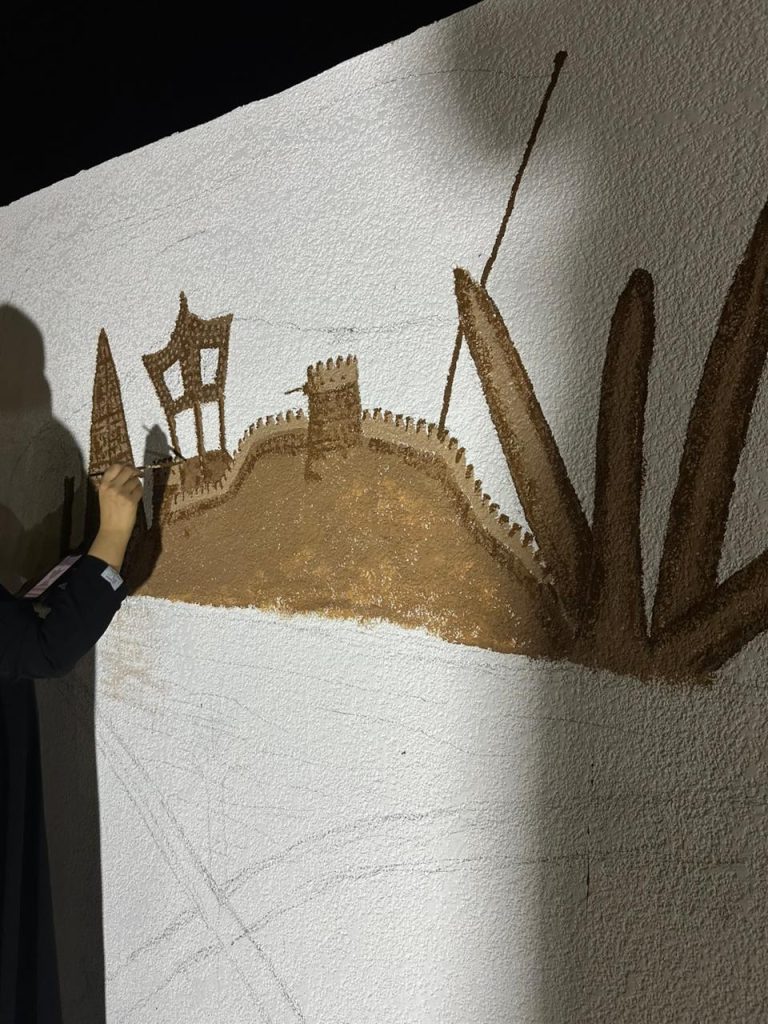 أمسكت الريشة، وترددت قليلًا. لست فنانة تشكيلية، لكنني حاملة لحكايات الجوف، ووجدت أن اللون قد يكون أبلغ من الكلمة أحيانًا. رسمتُ، لا لأُبهر، بل لأُعبّر. رسمتُ حكاية جوفية، من القلب، من الذاكرة، من الانتماء.