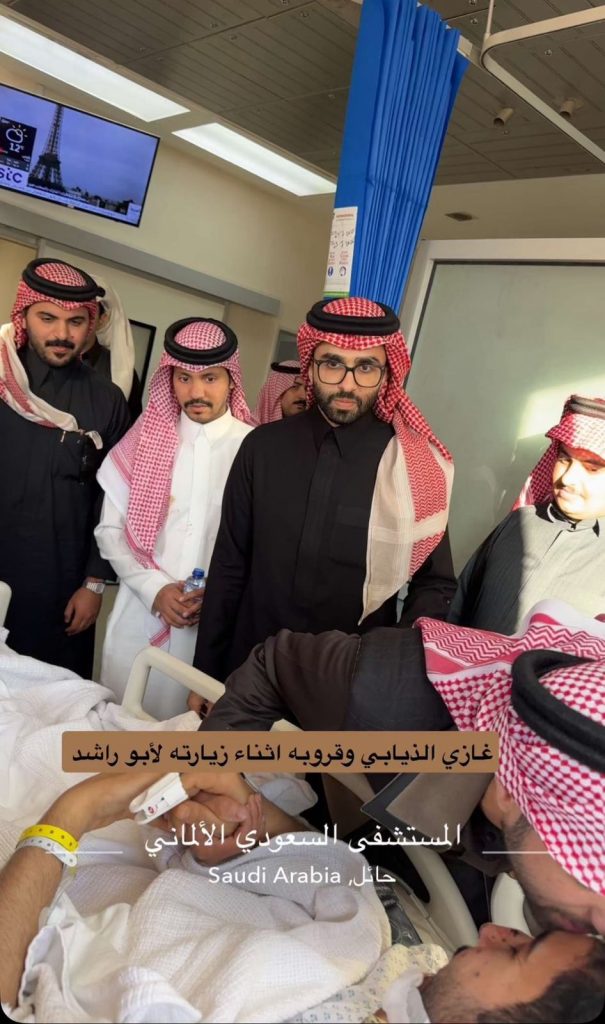 كما أظهرت الصورة مشهور سناب غازي الذيابي أثناء زيارة أبو حصة في المستشفى للاطمئنان على صحته.