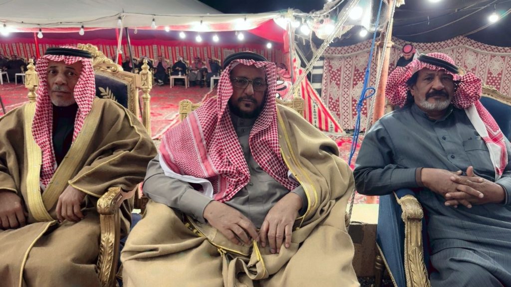 أقام رجل الأعمال “عايد عبيد بن خلف الشويلعي”، مساء أمس الجمعة، مأدبة عشاء على شرف مالك الإبل ورجل الأعمال نواف فالح بن رقيب المظيبري؛ وذلك بمناسبة حصول الفالحات على المركز الثاني في فئة شوط الرؤية شقح في مهرجان الملك عبد العزيز للإبل، بتشريف عدد من شيوخ وأعيان القبائل والمسؤولين، وحضور لافت لعدد من وسائل الإعلام.