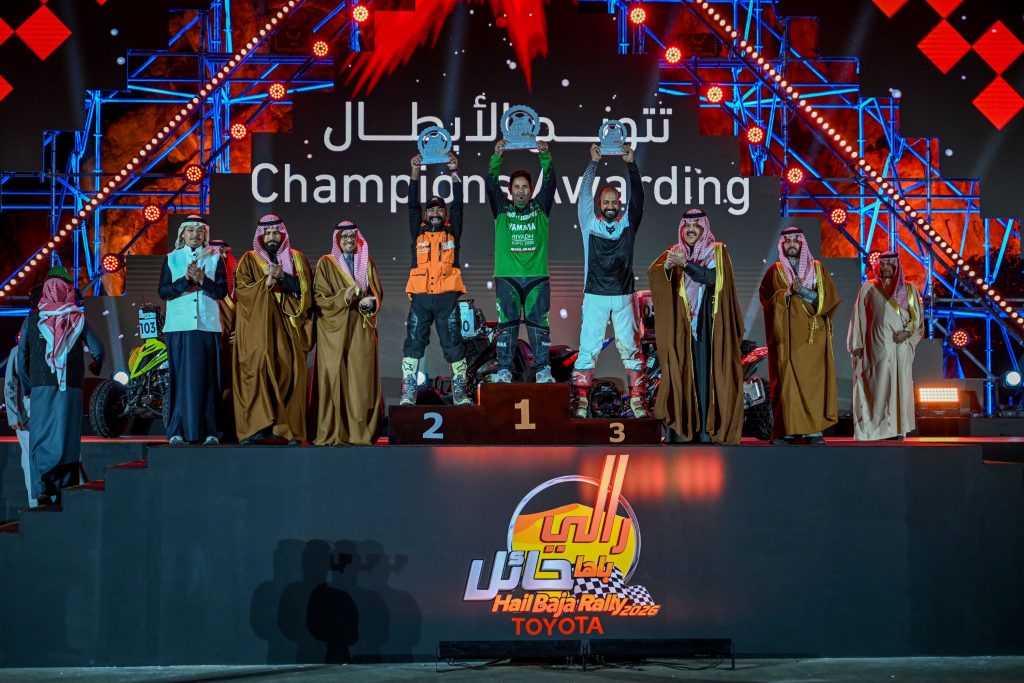 توج صاحب السمو الملكي الأمير عبدالعزيز بن سعد بن عبدالعزيز أمير منطقة حائل رئيس اللجنة العليا المنظمة لرالي باها حائل تويوتا الدولي 2026، وبحضور صاحب السمو الملكي الأمير فيصل بن فهد بن مقرن بن عبدالعزيز نائب أمير منطقة حائل، في منتزه المغواة مساء السبت، المتسابقين أبطال رالي حائل تويوتا الدولي 2026، بعد أن حقق القطري ناصر العطية، برفقة ملاحه الفرنسي ماكس دلفينو، المركز الأول لرالي باها حائل تويوتا الدولي 2026 للمرة السادسة في تاريخ الرالي، على متن مركبة من طراز (OPTIMUS MD)، وقطع مسافة المرحلة الأخيرة البالغة 323 كم في زمن قدره 4 ساعات و06 دقائق و32 ثانية، وجاء السعودي يزيد الراجحي ثانياً بفارق 42 ثانية في الترتيب النهائي، وحققت السعودية دانية عقيل المركز الثالث بفارق 14 دقيقة.