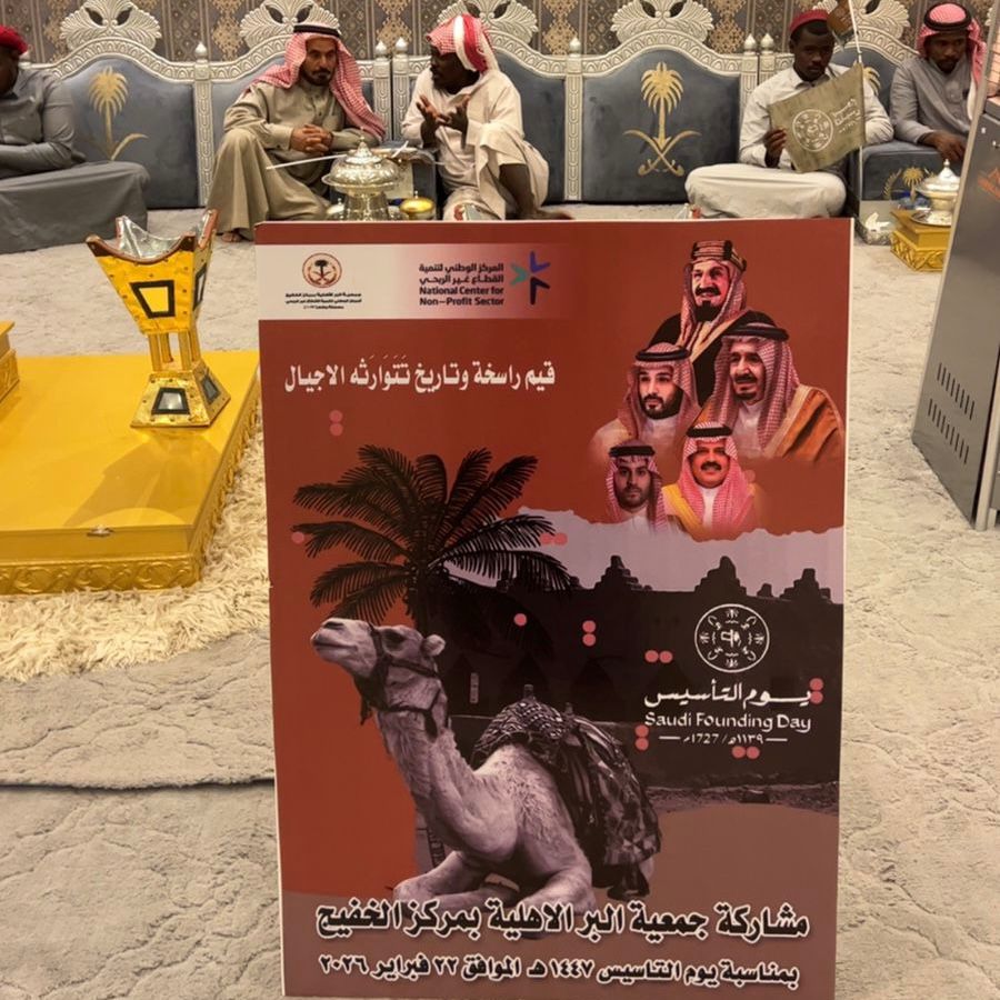 أقامت جمعية البر الأهلية بمركز الخفيج احتفالًا بمناسبة يوم التأسيس؛ تجسيدًا لاعتزازها بتاريخ الوطن العريق، في أجواء مفعمة بالانتماء والفخر.