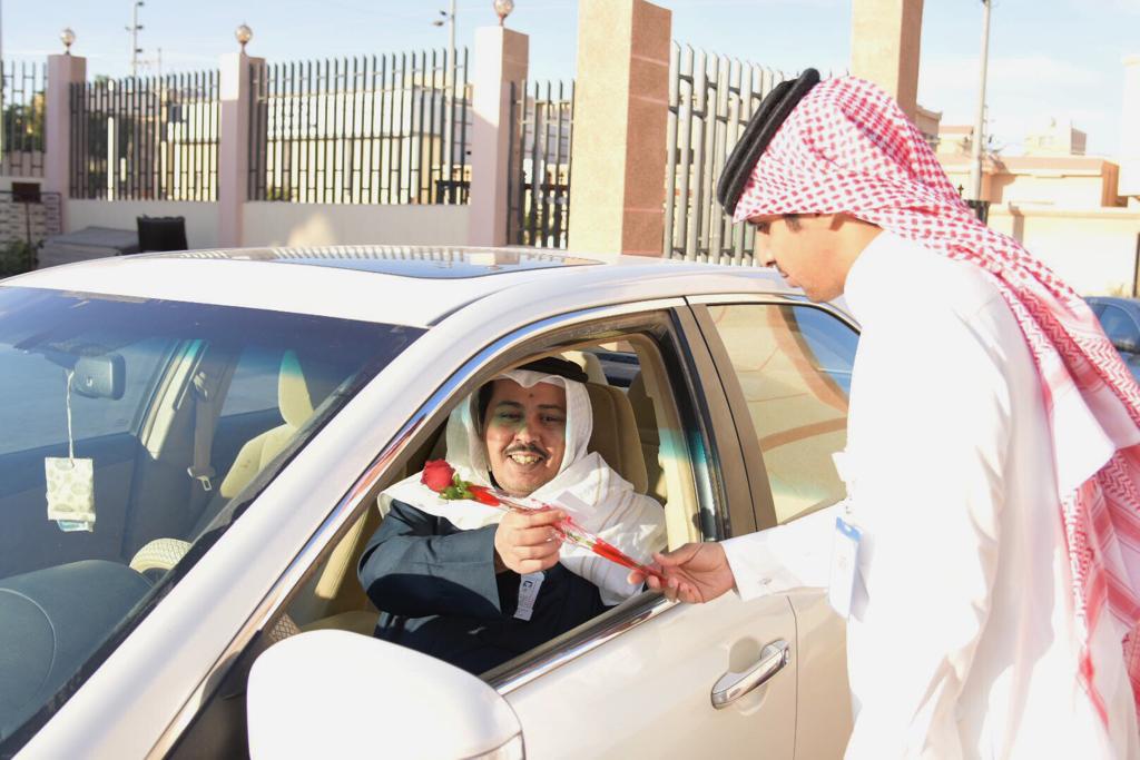 كما قامت مديرية الشؤون الصحية بحفرالباطن اليوم بتقديم وردة للحاضرين للعمل مبكراً كتب عليها ( شكراً .. تقديراً لحضورك المبكر والالتزام في إبراز بطاقة العمل وفرنا لك موقف) ومذيلة باسم مدير الشؤون الصحية ناصر الصافي