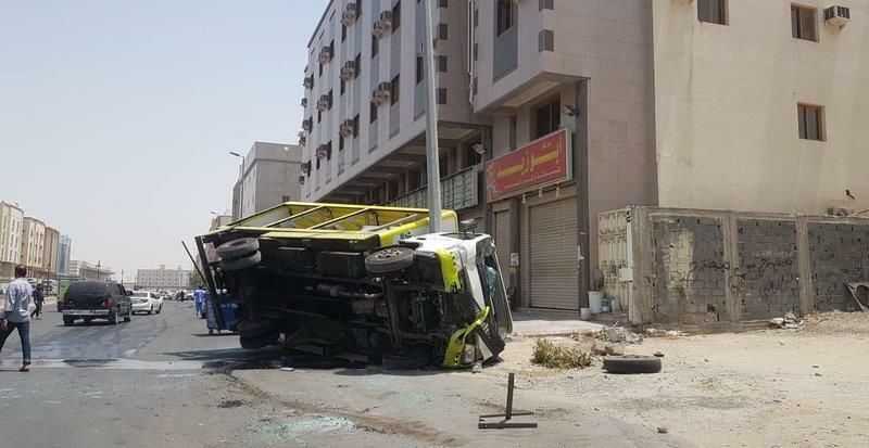 وكانت الأجهزة الأمنية والمرور والهلال الأحمر والدفاع المدني انتقلوا لحي الكعكية بعد تلقي بلاغ حول قيام سائق شيول بإتلاف 15 سيارة صغيرة ووايت وينّا وأعمدة إنارة.