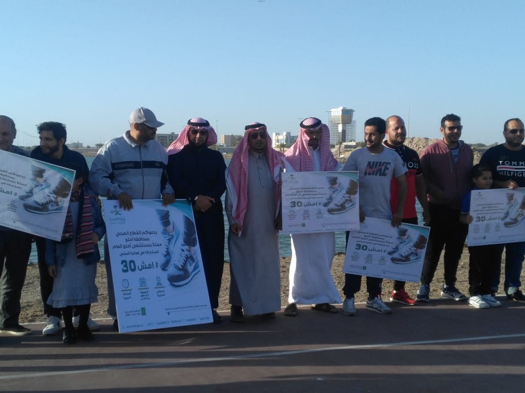 تقدم سعادة وكيل محافظة املج الاستاذ مسعود مسلم الجهني مساء اليوم الجمعة المشاركين بمبادرة #نمشي_30 والذي انطلقت على ممشى الكورنيش برعاية من القطاع الصحي ممثلاً بمستشفى املج العام .