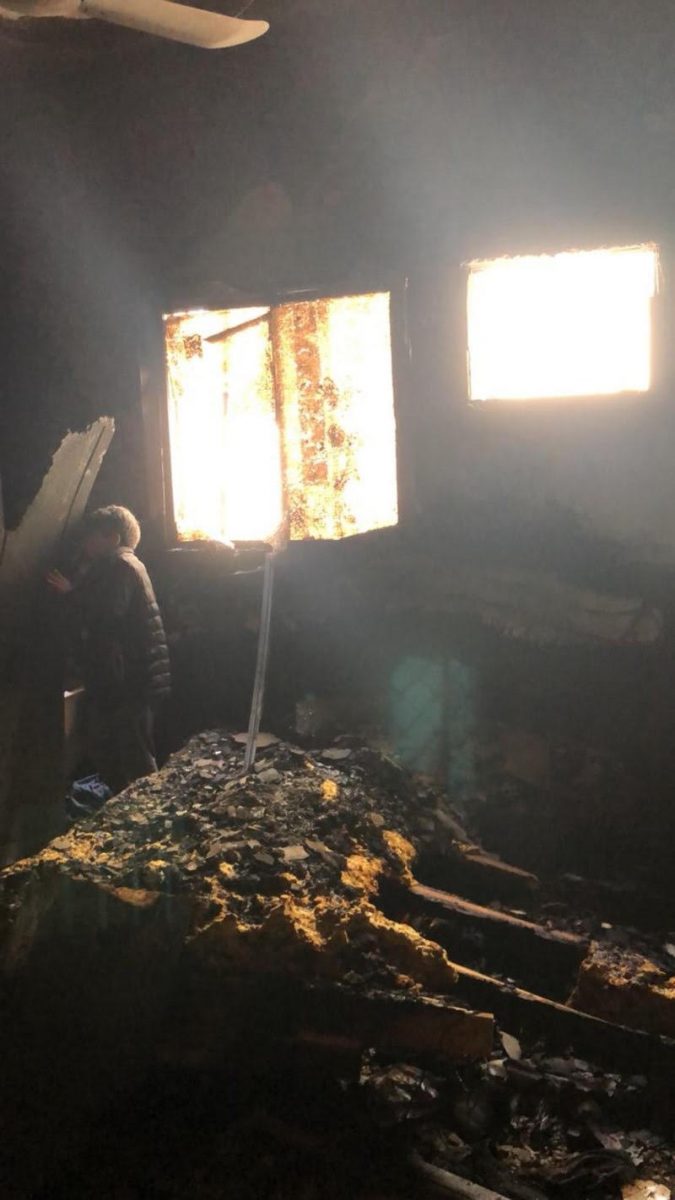 وأضافت: سمعنا صوت سعاله داخل نيران الغرفة، وفي تلك اللحظة لم يستطع أي شخص الدخول بسبب النيران ودخانها الكثيف، وبفضل من الله ولطفه، ألهمني القوة لأُجازف بنفسي؛ حيث دخلت حبوًا واستطعت الوصول للغرفة، ووجدته في زاويتها مُغمى عليه.