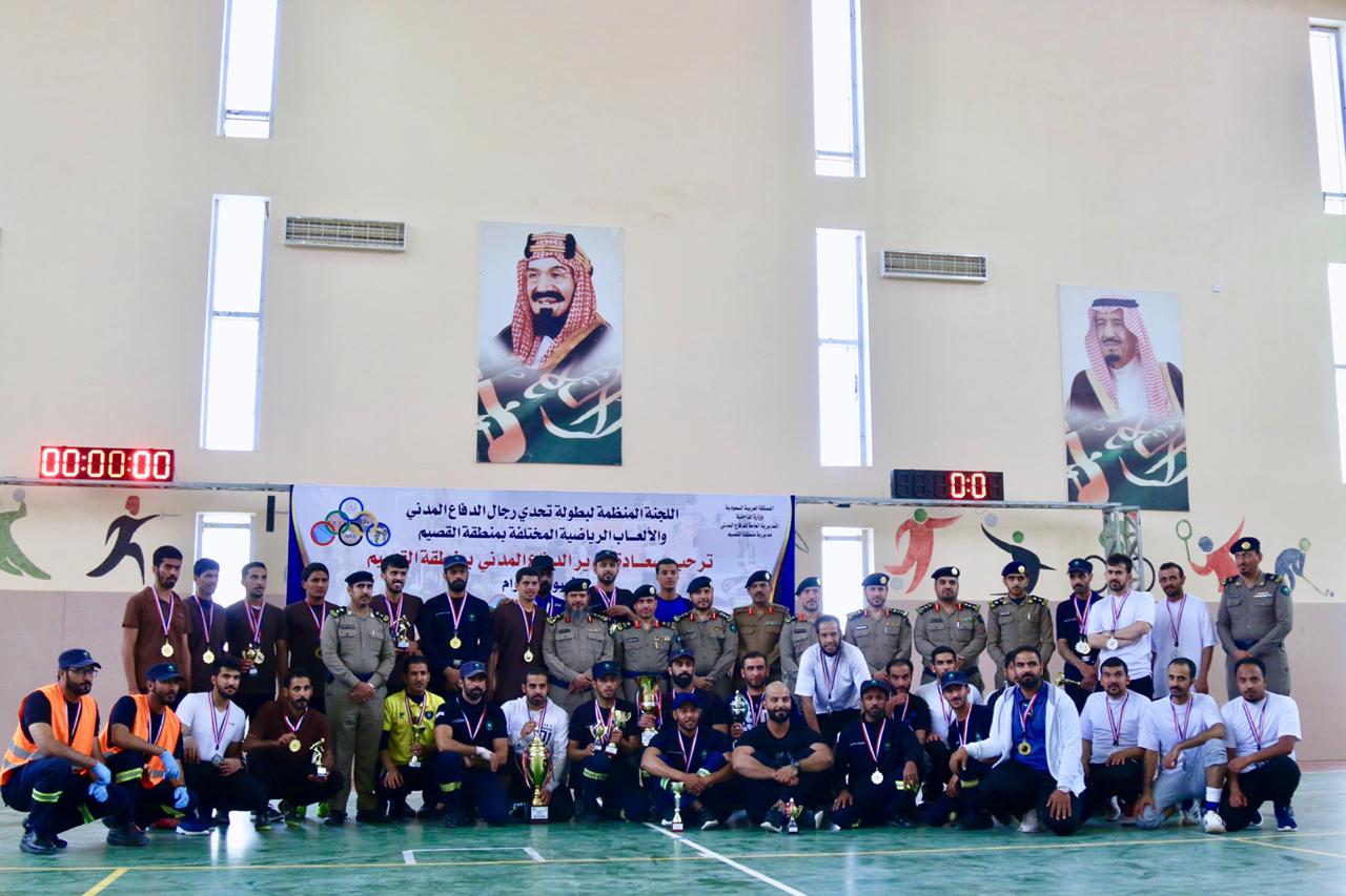 برعاية مدير الدفاع المدني بمنطقة القصيم سعادة اللواء عبدالرحمن بن عبدالله الصالح اختتمت صباح اليوم الثلاثاء بطولة تحدي رجال الدفاع المدني والألعاب الرياضية المختلفة بمنطقة القصيم والتي اقيمت منافساتها على ملاعب التعليم بمدينة بريدة.