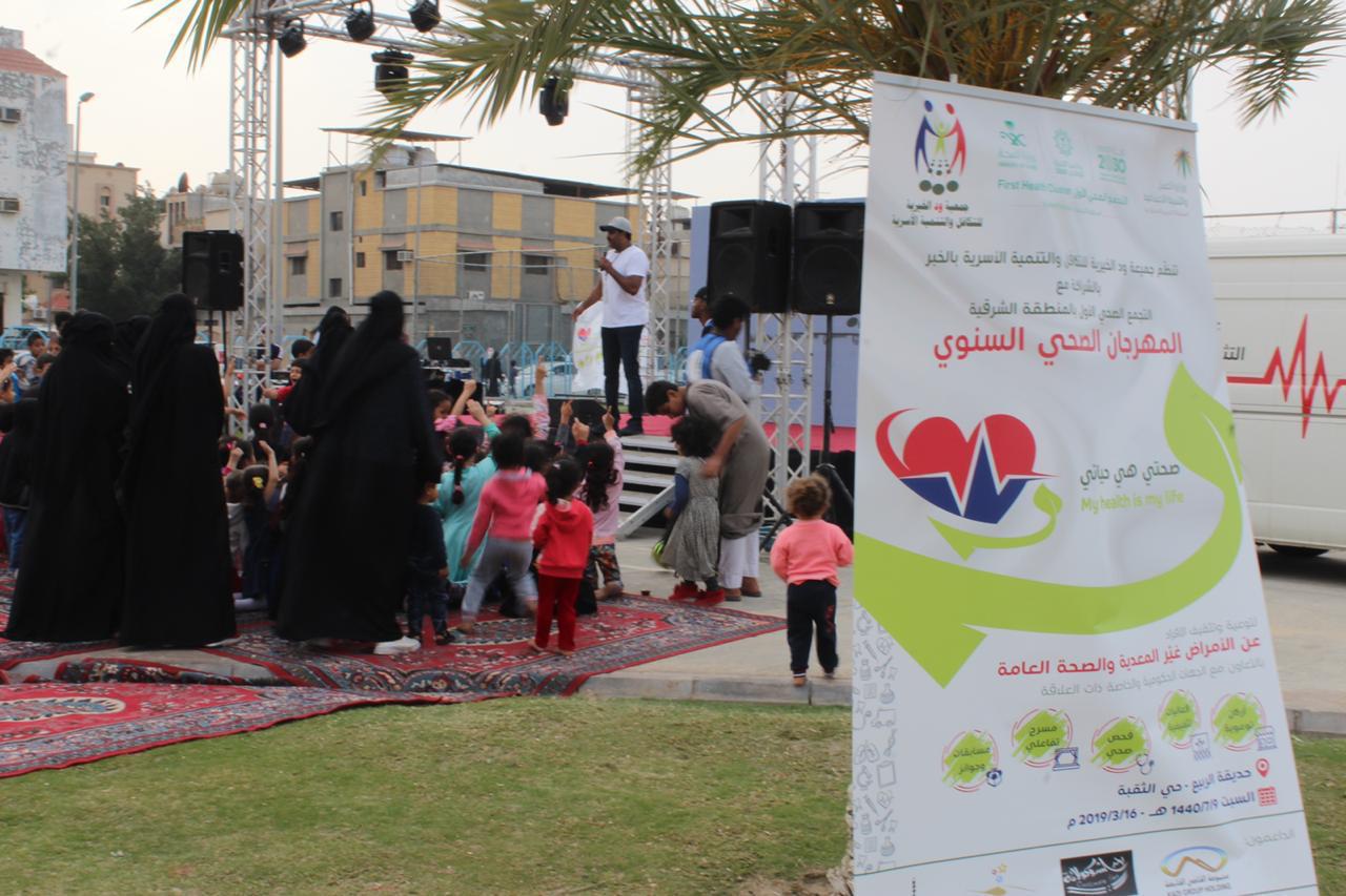 وأشارت المشرفة على المهرجان الصحي ابتسام الشيخ إلى أن أجهزة الفحص المتعلقة بأمراض السكر والضغط والعيون أجرت الكشف على أكثر من 700 مستفيد من الرجال والنساء والأطفال بمشاركة عيادة ود التثقيفية المتنقلة إضافة إلى تعليم مايقارب 300 إمرأة على الفحص الذاتي عن سرطان الثدي في الخيمة النسائية ، مبينة أن المهرجان تضمن أركانا تثقيفية لعدة جهات منها المراكز الصحية بالخبر ومجمع الأمل للصحة النفسية وجمعية السرطان السعودية وجمعية السكر ومركز التأهيل الشامل وجمعية تعافي وجمعية السكر وفريق دراجي لمرضى التصلب المتعدد ومركز غضون المستقبل للرعاية النهارية وأركان للجمعية منها نادي أهالينا وصحة الفم والأسنان وصحة القلب والمرسم الحر والجلدية إضافة للمسرح الترفيهي والاجتماعي .