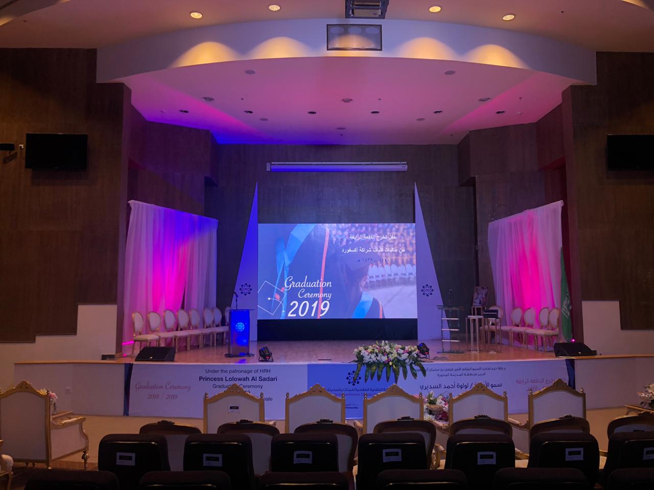 زفت حرم صاحب السمو الملكي أمير المدينة المنورة صاحبة السمو الأميرة لولوة بنت أحمد السديري مساء أمس 98 خريجة من خريجات الكلية التقنية العالمية للبنات بالمدينة المنورة لسوق العمل للعام الدراسي 2018-2019م يمثلن الدفعة الرابعة من خريجات الكلية في الحفل الذي أقيم بمقر الكلية بطريق الملك خالد بالمدينة المنورة ، بحضور عميدة الكلية زينب سعيد، وعضوات هيئة تدريس الكلية والاكاديميات ومنسوبات التعليم وسيدات الأعمال وأمهات المحتفى بهن.