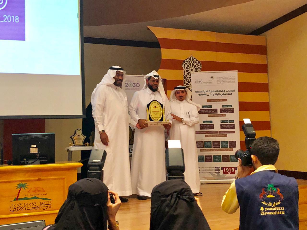 وفِي كلمة لمديرة الوحدة بالأحساء امل المسلم قالت(عملت وحدة الحمايه الاجتماعية لهذا العام على توعية المجتمع ووقايته من العنف الاسري الواقع على النساء والاطفال و كبار السن وذوي الاحتياجات الخاصة حيث قدمت سلسله من الامسيات الخاصة بالطفل تحت مسمى فلذات اكبادنا،بمبادره الباحثة الاجتماعية ليلى البحراني ومشاركة مسئولة القسم الإعلامي زهور العلي وبالتعاون مع باقي الاقسام بالوحدة كقسم العلاقات العامة باشراف عزيزه الحميدي والقسم الاجتماعي باشراف نوره الخلف ونورا البريك وقسم البرامج والانشطه باشراف عواطف القطيفي وعبيرالنهيان الذي تضمن عددا من الأمسيات التربويه استهدفت أوليا ء الأمور والمعلمين والمهتمين بامور التربية والأسرة وعامة المجتمع لوقاية المجتمع من العنف الاسري الذي يعتبر خطرا قد لا يعي له الكثير من الناس