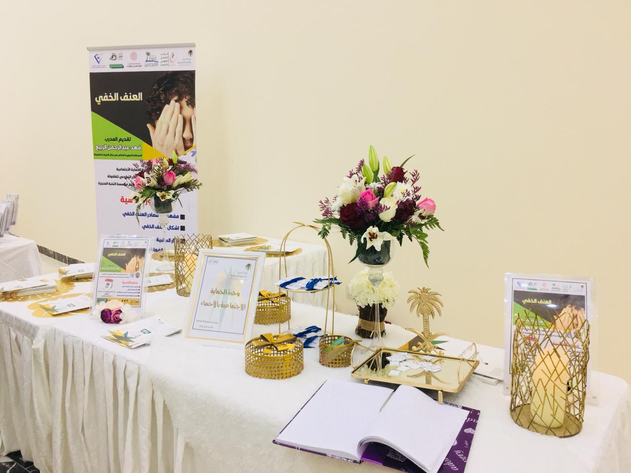 بحضور مدير اداره الحماية الاسرية بفرع وزاره العمل والتنمية الاجتماعية بالمنطقه الشرقية منصور الخالدي ومشرفة وحدة الحماية الاجتماعية بالأحساء في المنطقة فتحيه ال عباس،أقامت وحدة الحماية الاجتماعية بالأحساء بالنادي الأدبي وبالتعاون مع فريق درر التطوعي اُمسيةتربوية بعنوان العنف الخفي.