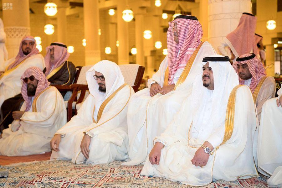 وأدى الصلاة مع سموه، صاحب السمو الأمير فهد بن عبدالله بن محمد بن عبدالرحمن ، وصاحب السمو الملكي الأمير محمد بن مشاري بن عبدالعزيز وصاحب السمو الأمير الدكتور عبدالعزيز بن محمد بن عياف، وصاحب السمو الأمير خالد بن عبدالعزيز بن مشاري، وعدد من أصحاب السمو الملكي الأمراء .