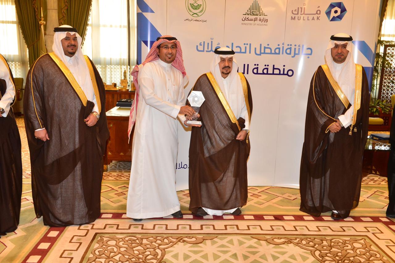 سلَّم صاحب السمو الملكي الأمير فيصل بن بندر بن عبدالعزيز أمير منطقة الرياض بمكتبه بقصر الحكم اليوم جائزة أفضل اتحاد مُلّاك لعام 2019، بحضور صاحب السمو الملكي الأمير محمد بن عبدالرحمن بن عبدالعزيز نائب أمير منطقة الرياض ومعالي وزير الإسكان الأستاذ ماجد بن عبد الله الحقيل، والتي حصل عليها أفضل ستة اتحادات ملاك بشقيها السكني والتجاري بمنطقة الرياض، بعد أن حققوا معايير الجائزة التي أطلقها برنامج “مُلّاك” التابع لوزارة الإسكان .
