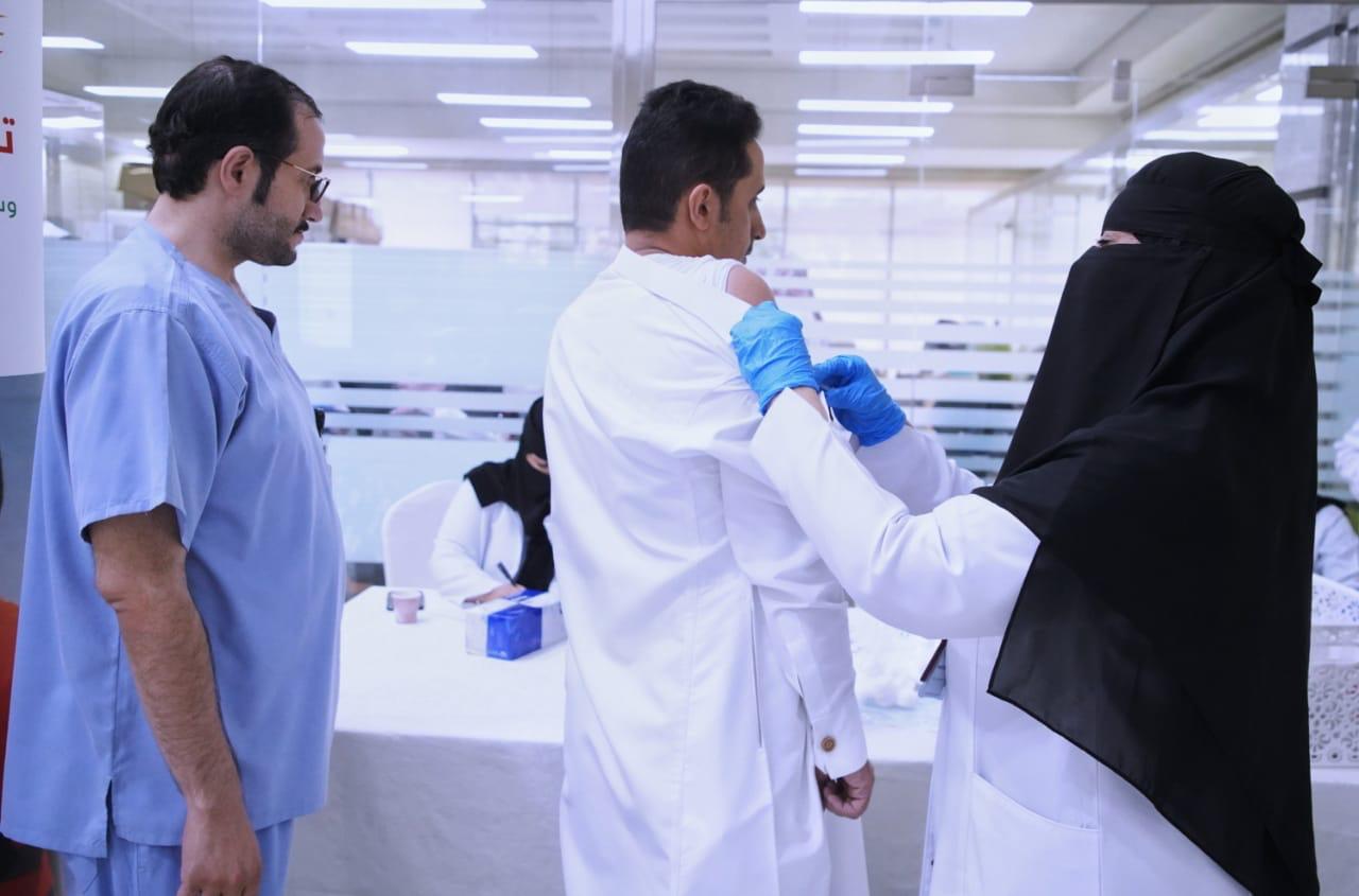 كما قامت الهيئة بنشر معلومات توعوية عبر قناة التواصل الداخلي لمنسوبيها تبين فيها الحالات التي لا يجب فيها اخذ لقاح الانفلونزا بالاضافة الى فوائد واهميةاخذ اللقاحات الموسمية في تعزيز الصحة العام للفرد .