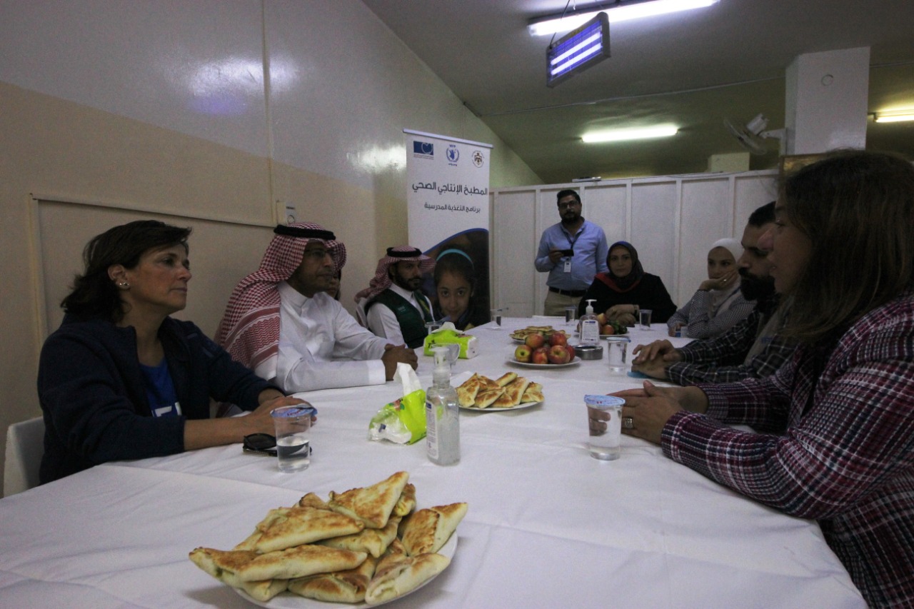 حيث تخلل الزيارة الاطلاع على المطبخ الصحي التابع لبرنامج الاغذية العالمي والاطلاع على دور السيدات اللواتي يقمن بإنتاج وتغليف وجبات التغذية المدرسية في هذا المطبخ بالاضافة الى المشاركة في توزيع هذه الوجبات على الطلبة في إحدى المدارس في محافظة مادبا ، وفي الختام تم زيارة احد المواقع التابعة لوزارة الزراعة الاردنية وأخذ جولة في المشاريع المقدمة فيها كمشاريع الانتاج الحيواني والنباتي ومصايد الاسماك والزراعة المائية .