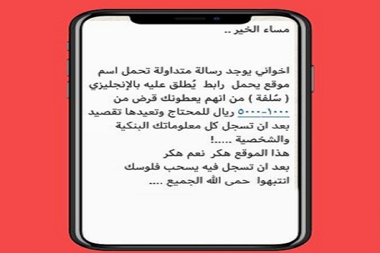 لا صحة للرسالة المتداولة عبر الواتساب بعنوان «موقع سلفة يخترق حسابك ويسحب أموالك», وسلفة هي شركة تقنية مالية مرخصة من قبل مؤسسة النقد رسمياً وموقعها الإلكتروني آمن.https://t.co/15K4kujm2m pic.twitter.com/kqGi0YLt31