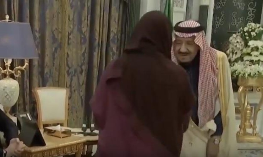 نُشر اليوم (الخميس) مقطع فيديو يظهر ترحيب خادم الحرمين الشريفين الملك سلمان بن عبد العزيز بسفيرة المملكة في الولايات المتحدة الأمريكية الأمير ريما بنت بندر بن سلطان.