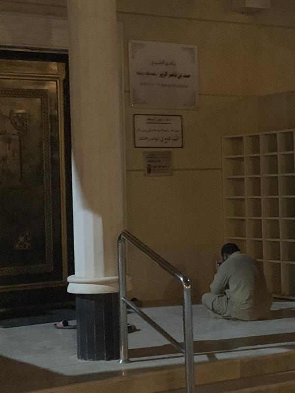 ونشر مؤذن الجامع عبر حسابه صورة للعامل وهو يجلس أمام باب الجامع ويدعو باكياً متأثراً لعدم تمكنه من الصلاة داخل المسجد، وبيّن أن هذا العامل مصاحب للقرآن وملازمٌ للصلاة خلف المحراب.