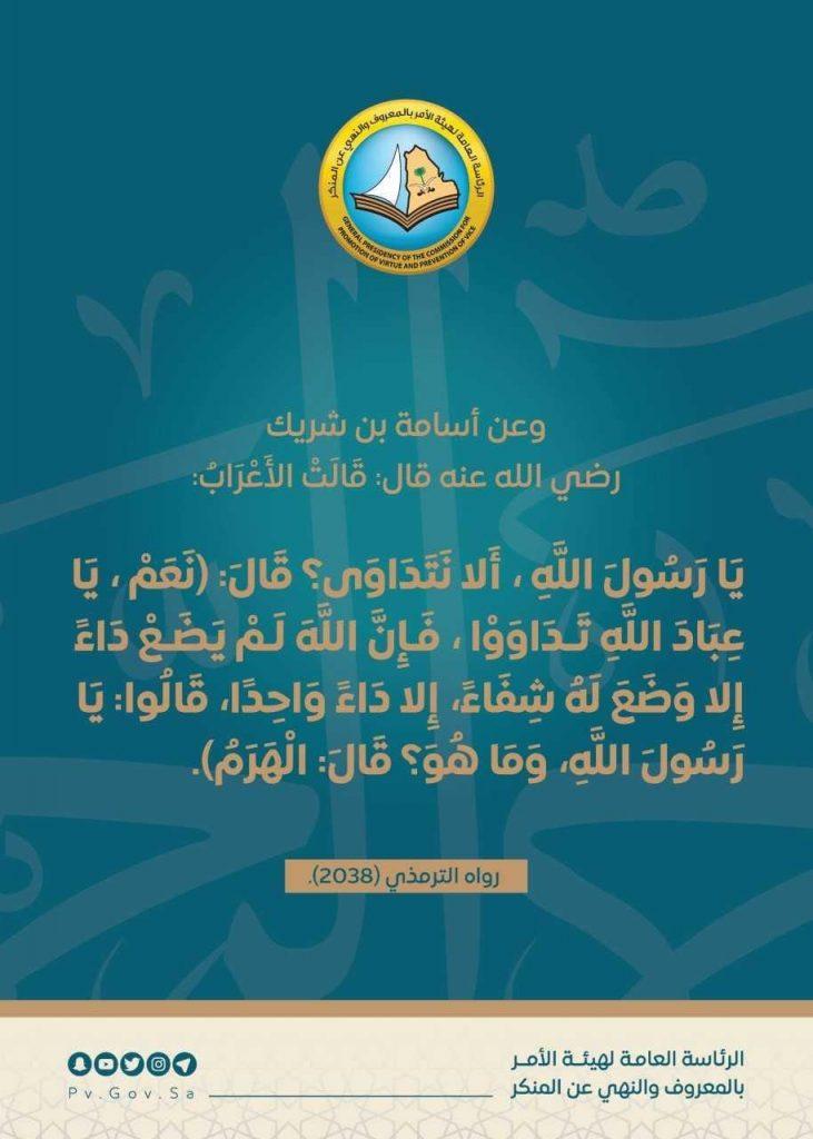 أقامت الرئاسة العامة لهيئة الامر بالمعروف والنهي عن المنكر ممثلة بهيئة محافظة طريف خلال الأيام الماضيه عدد من الندوات والحملات التوعوية يأتي في مقدمتها إعداد وطباعة منشور وقائي يحث على التذكير بآحاديث السنة النبويه المستمده من خاتم الأنبياء والمرسلين سيدنا محمد صلى الله عليه وسلم، تهدف بالدرجة الاولى التحصين من الأوبئة والأمراض وغيرها من المحتويات الوقائية ، وقد جاءت هذه المبادرات والأنشطة التوعوية تمشيا مع توجيهات معالي الرئيس العام لهيئة الأمر بالمعروف والنهي عن المنكر الشيخ الدكتور عبدالرحمن بن عبدالله السند حفظه الله