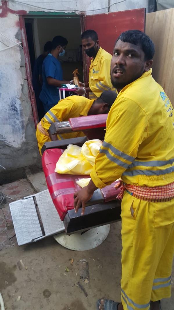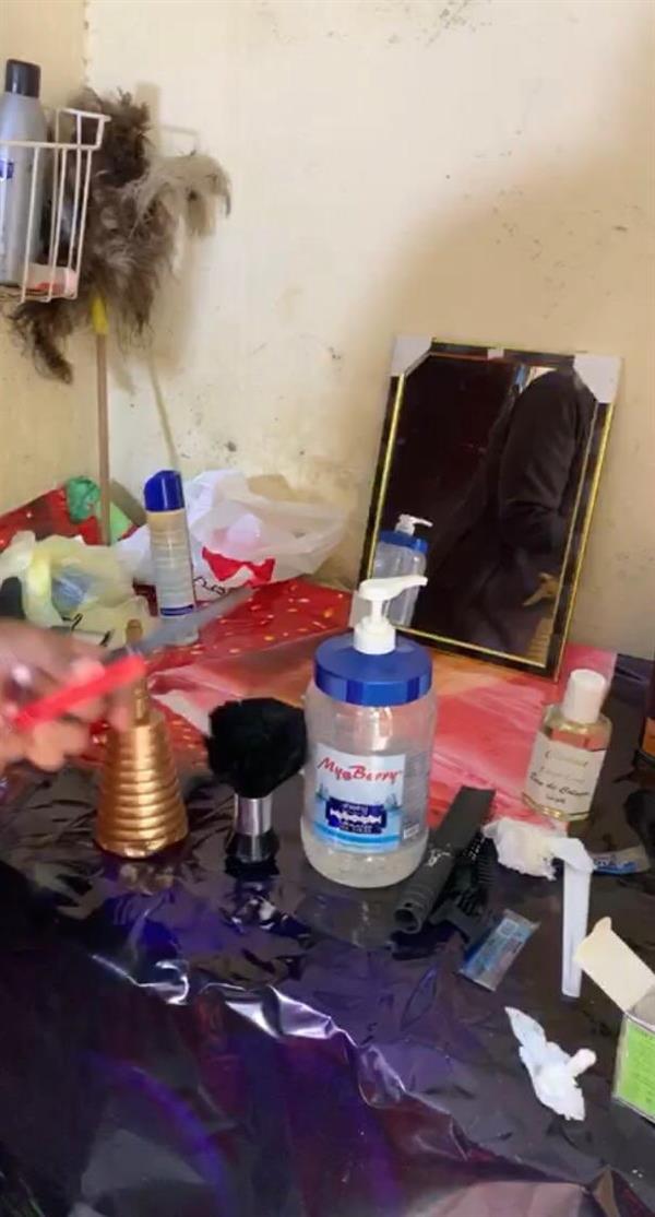 وأظهرت صور ومقطع فيديو لحظة مداهمة فرق البلدية للسكن العشوائي والذي يفتقر للشروط الصحية، حيث تمت مصادرة الأدوات المستخدمة في الحلاقة.