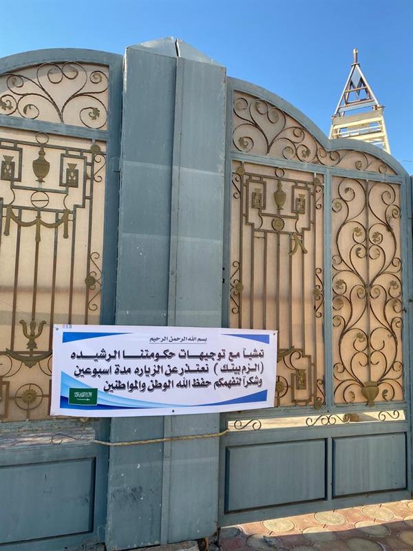 وكتب في اللافتة: “تمشيا مع توجيهات حكومتنا الرشيدة (الزم بيتك)، نعتذر عن الزيارة مدة أسبوعين، شكرا لتفهمكم، حفظ الله الوطن والمواطنين”.