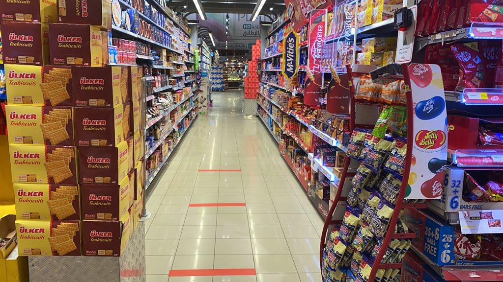 حيث تضمن الإلزام وضع المسافات بين المتسوقين أثناء وقوفهم عند صناديق المحاسبة وعند الرفوف وتكون بمسارات مرسومة على الأرضيات ومخططة بدقة واضحة.