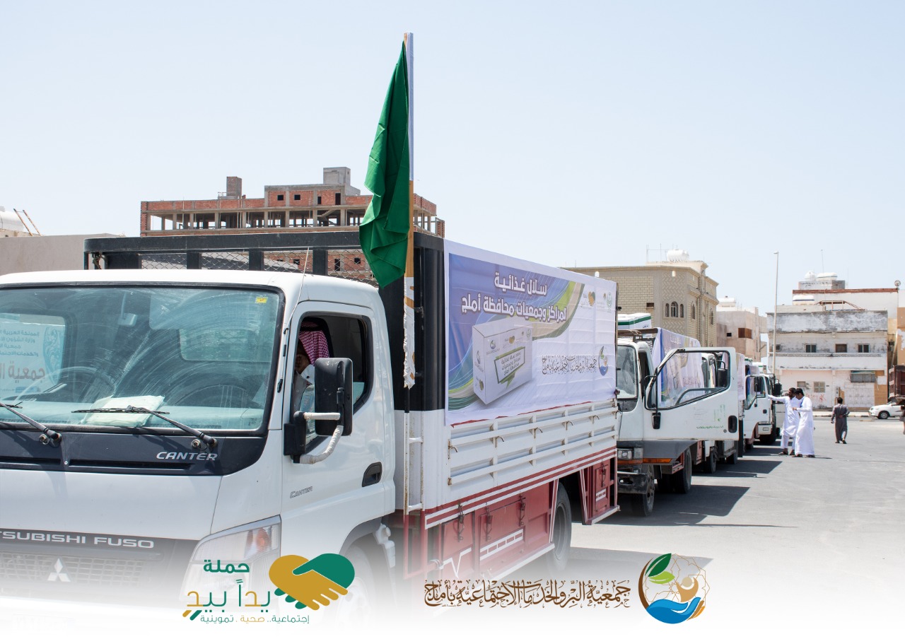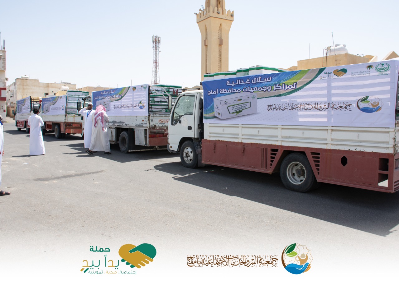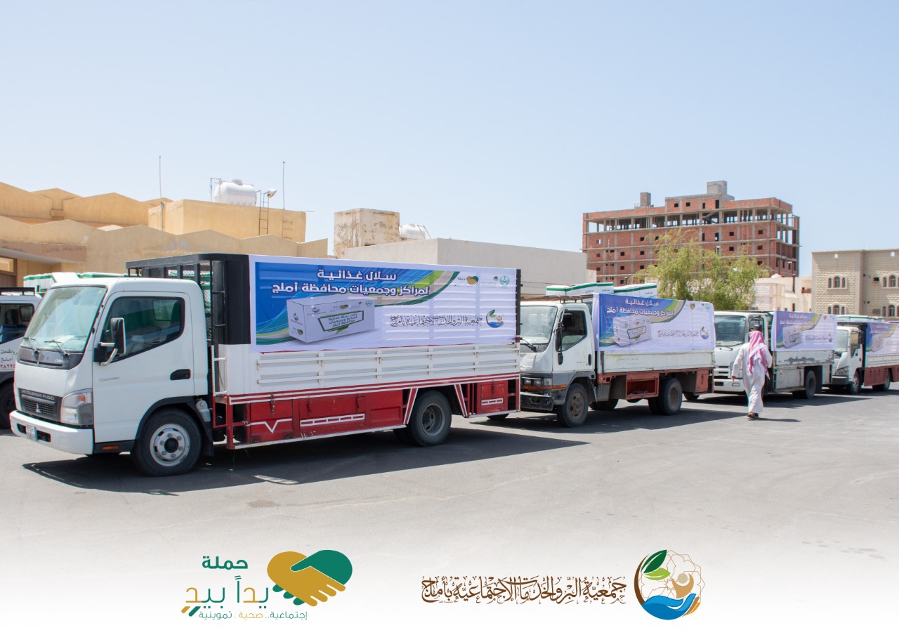استمراراً للعطاء في مبادرة “يداً بيد” التي اطلقها صاحب السمو الملكي الامير فهد بن سلطان امير منطقة تبوك وبحضور وكيل محافظة املج مسعود بن مسلم الجهني ، سيرت اليوم جمعية البر والخدمات الاجتماعية (ام الجمعيات) بأملج قافلة من الشاحنات المتوسطة كثاني اكبر خطوة تقدمها ضمن مبادرة امير منطقة تبوك لتغذية الجمعيات المستقلة وفروع بر املج التي تتوزع في 15 مركزاً تابع لاملج لخدمة المتضررين من الاجراءات الاحترازية التي طبقتها الحكومة لتفادي إنتشار العدوى بفيروس كورونا.