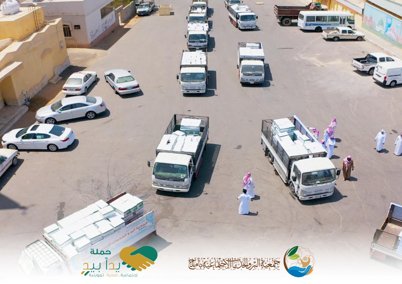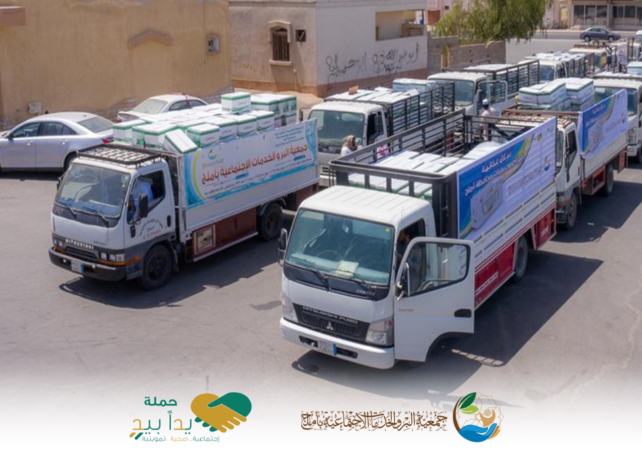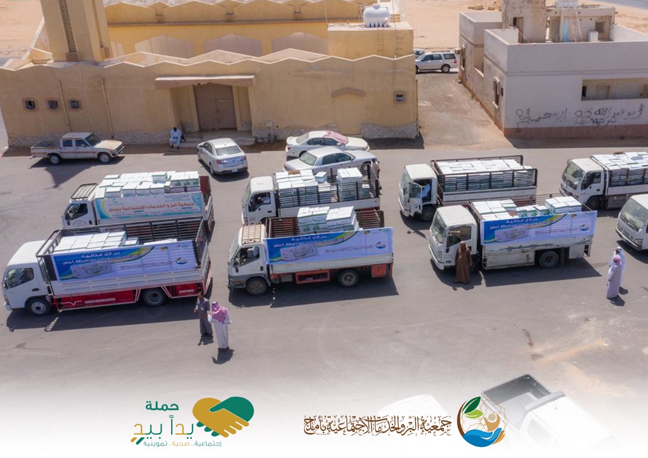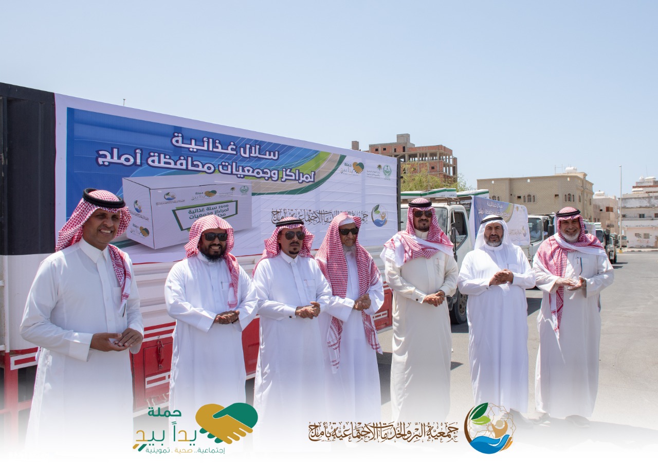 استمراراً للعطاء في مبادرة “يداً بيد” التي اطلقها صاحب السمو الملكي الامير فهد بن سلطان امير منطقة تبوك وبحضور وكيل محافظة املج مسعود بن مسلم الجهني ، سيرت اليوم جمعية البر والخدمات الاجتماعية (ام الجمعيات) بأملج قافلة من الشاحنات المتوسطة كثاني اكبر خطوة تقدمها ضمن مبادرة امير منطقة تبوك لتغذية الجمعيات المستقلة وفروع بر املج التي تتوزع في 15 مركزاً تابع لاملج لخدمة المتضررين من الاجراءات الاحترازية التي طبقتها الحكومة لتفادي إنتشار العدوى بفيروس كورونا.