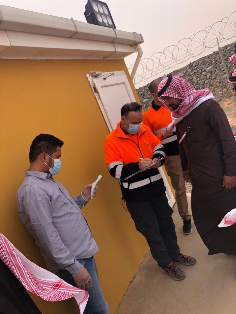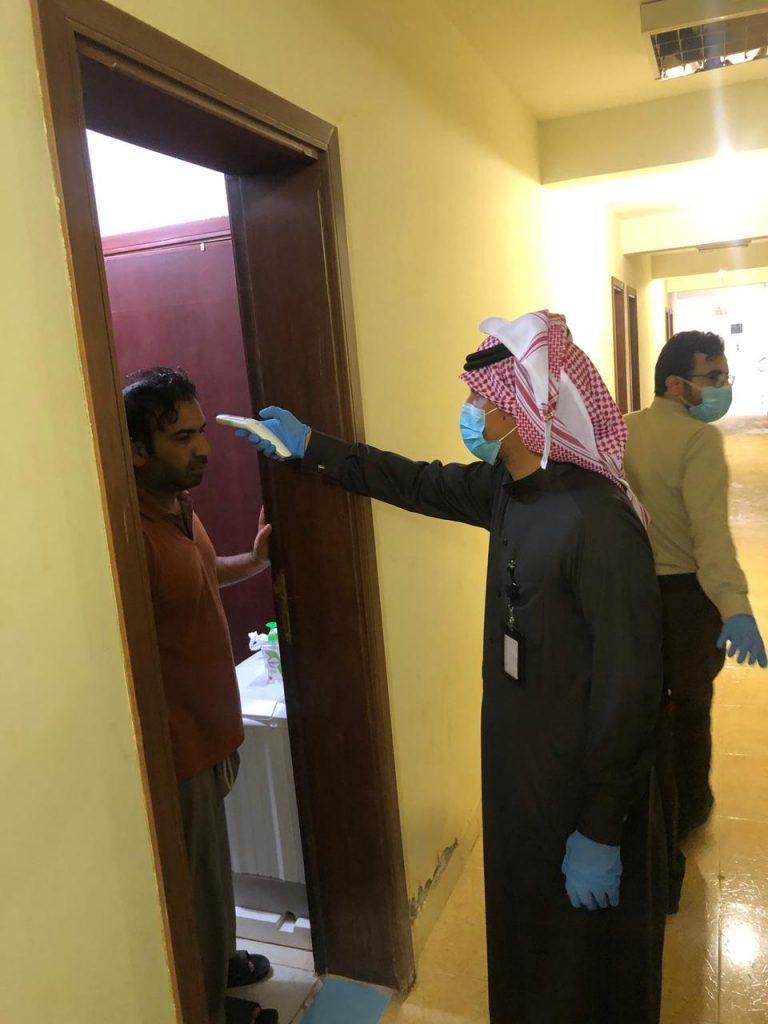 هذا وقد تم التأكد من إتخاذ الشركة إجراءات إحترازية للعمالة وللقادمين و توفير الكمامات بالسكن وإقفال المطعم كما قامت اللجنة بالتأكد من مساحة الغرف ونظافتها والتهوية الخاصة بالغرف وكذلك عدد العمال داخل الغرفة.