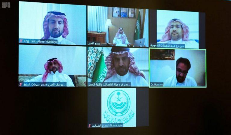 ترأس صاحب السمو الملكي الأمير فيصل بن خالد بن سلطان بن عبد العزيز أمير منطقة الحدود الشمالية عبر الاتصال المرئي اليوم, اجتماع خدمات شركات الإتصالات بالمنطقة، بحضور مدير فرع هيئة الاتصالات وتقنية المعلومات في المنطقة الشرقية المشرف على المنطقة الشمالية، وقيادات الفروع لشركات الاتصالات السعودية ، وموبايلي ، وزين .