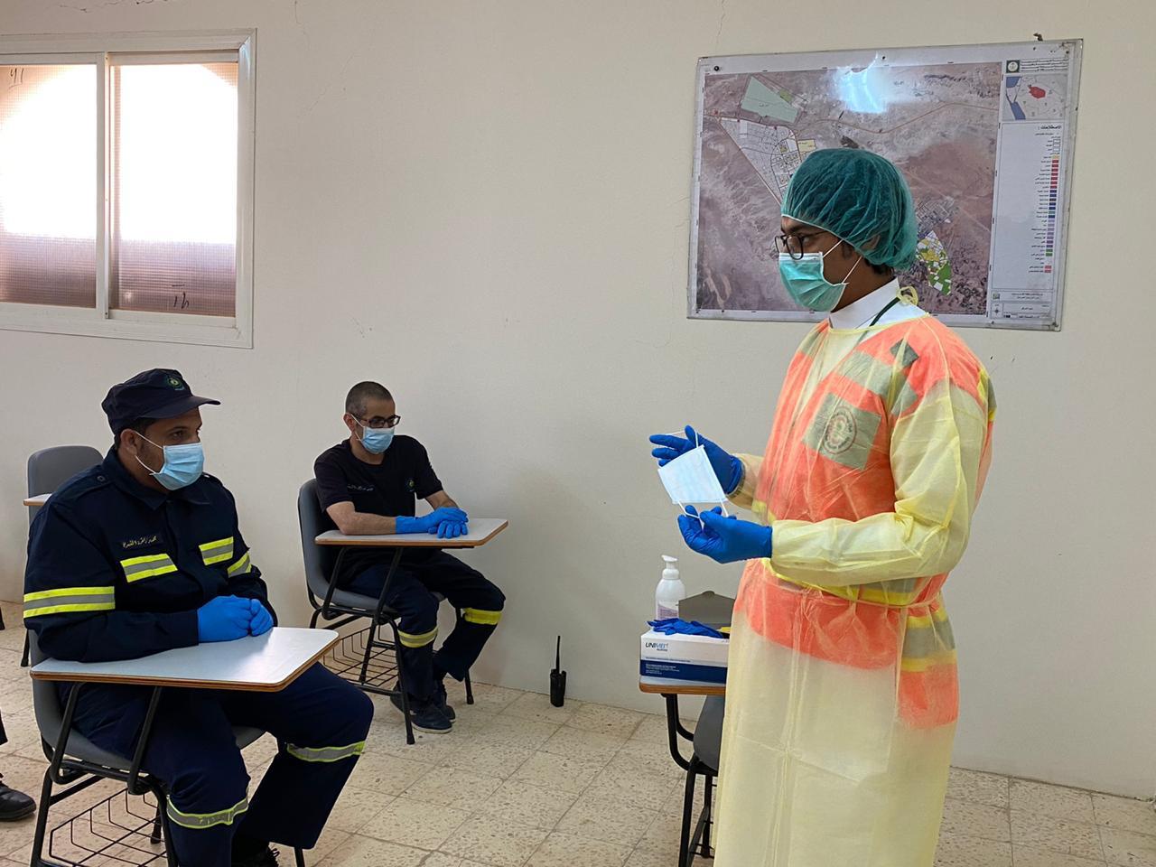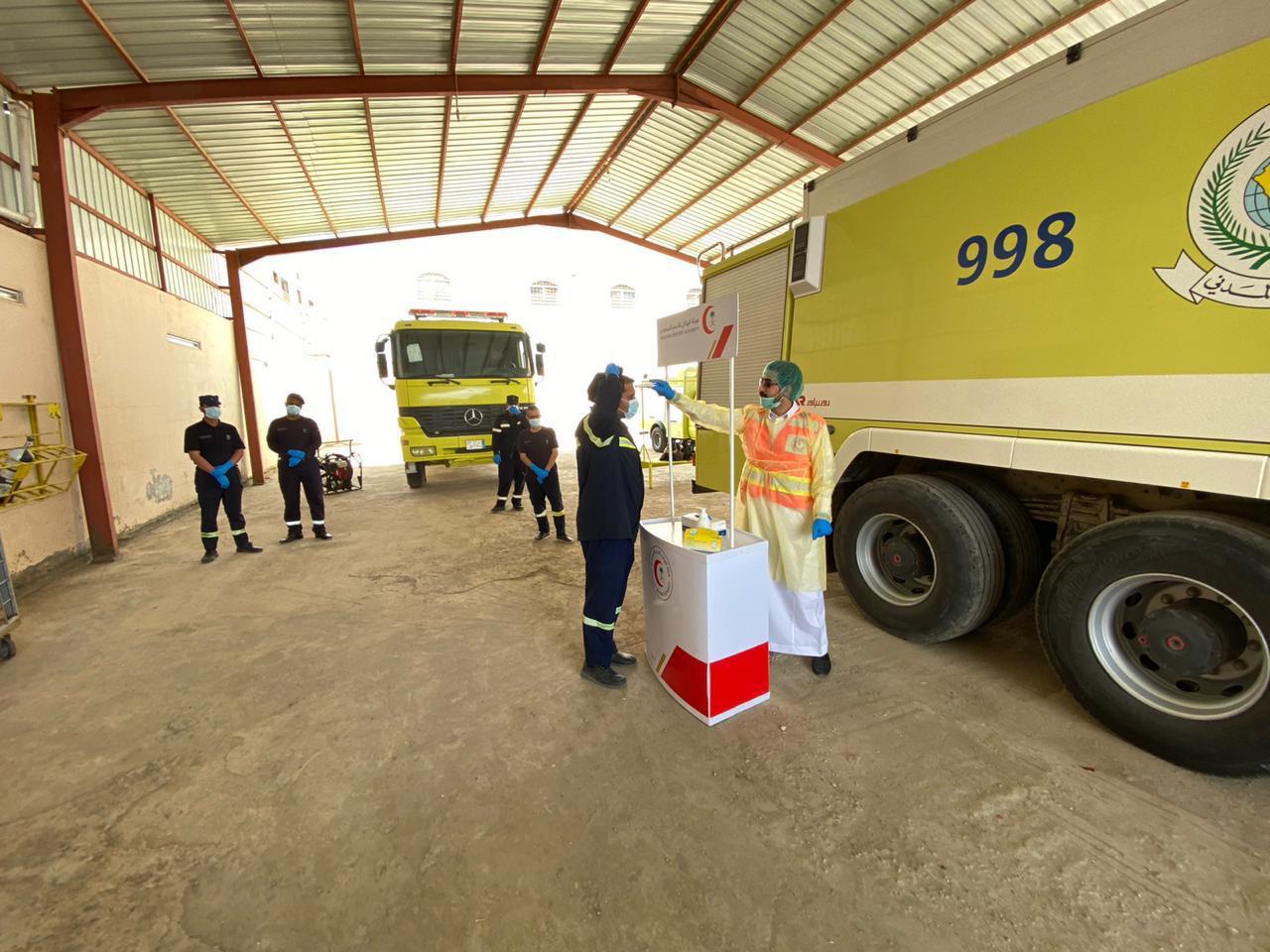 وتمثلت هذه الزيارة بإقامة نقطة فرز بصري بتلك المراكز للكشف على منسوبي الدفاع المدني وتقديم بعض النصائح والتوجيهات والتي يتخللها طريقة التعقيم السليمة وسبل الحماية الشخصية للوقاية من فيروس كورونا المستجد COVID-19 .