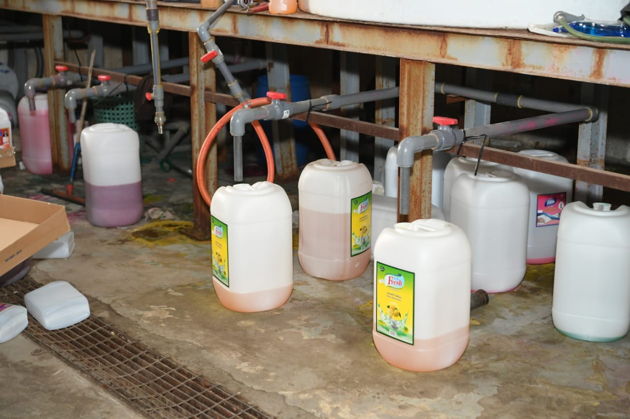 وأوضح رئيس بلدية غرب الدمام المهندس فيصل بن عبد الهادي القحطاني، أن إدارة الأسواق بالبلديه وبالتعاون مع فرع وزارة التجارة في المنطقة وشرطة المنطقة الشرقية تمكنت من رصدت مستودعين يقومون بعمليات التصنيع والتخزين بشكل مخالف، حيث تم مباشرة الموقع الأول والذي تبين أنه يحتوي على ٤٠ طن من مواد التنظيف والصابون والتي يتم تعبئتها وتجهيزها للتوزيع بالأسواق التجارية ونسبها الى شركات معروفة، فيما تم ضبط مستودع آخر والذي يحتوي على عدد كبير من الخضروات تقدر كميتها بـ 14 طن، يتم تحزينها وفرزها وتعبئتها استعداداً لتسويقها في منافذ البيع.