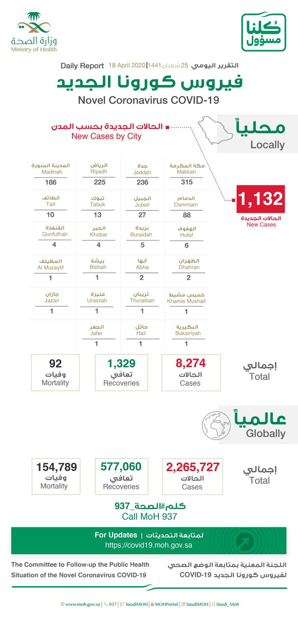 وقد جاء توزيع الإصابات حسب المدن كالتالي : مكة 315 – جدة 236 – الرياض 225 – المدينة المنورة 186 – الدمام 88 .